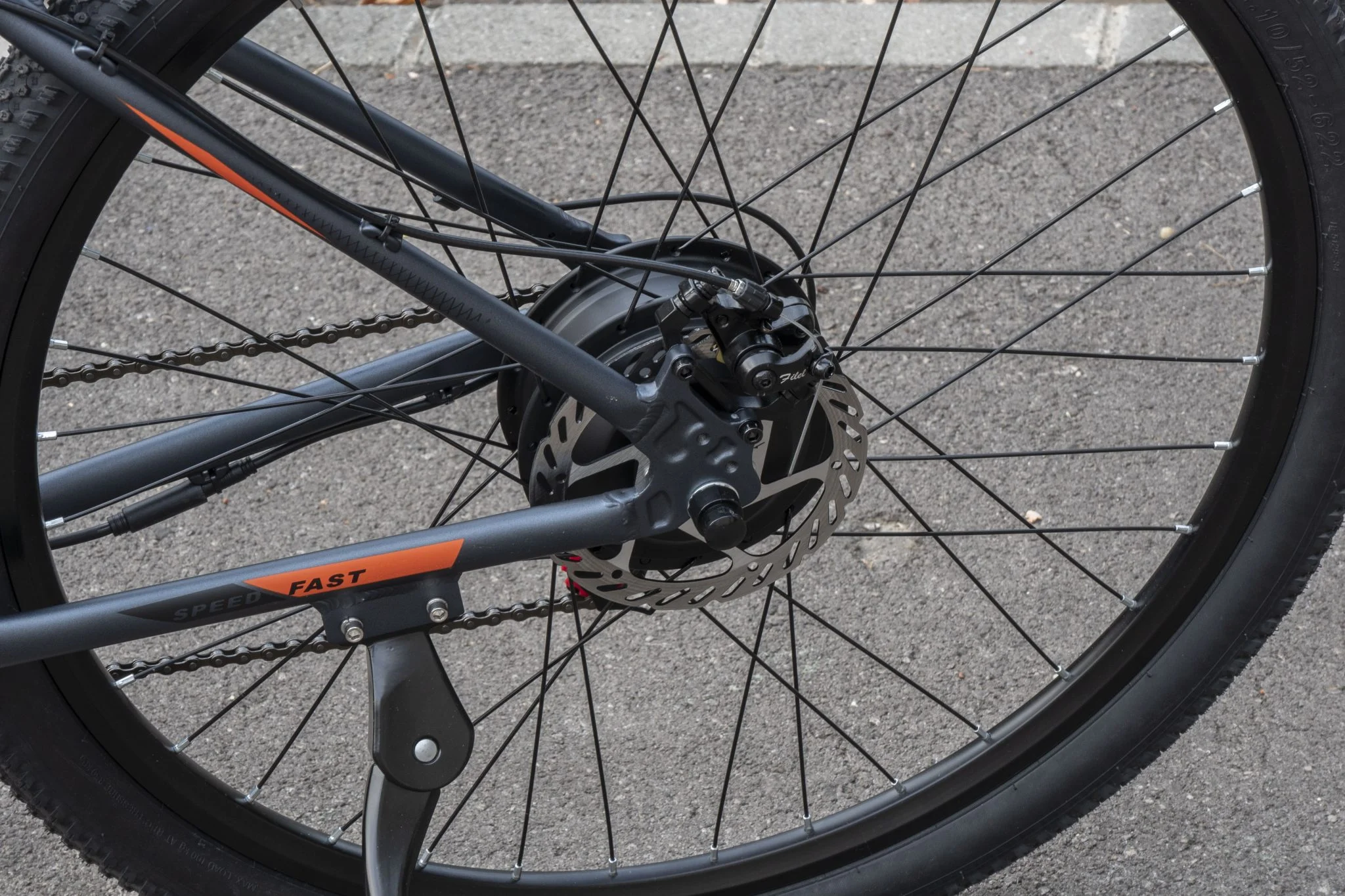 A másik a fék, ami a szokásos hitvány, 160 mm-es, bowdenes tárcsa elöl és hátul.