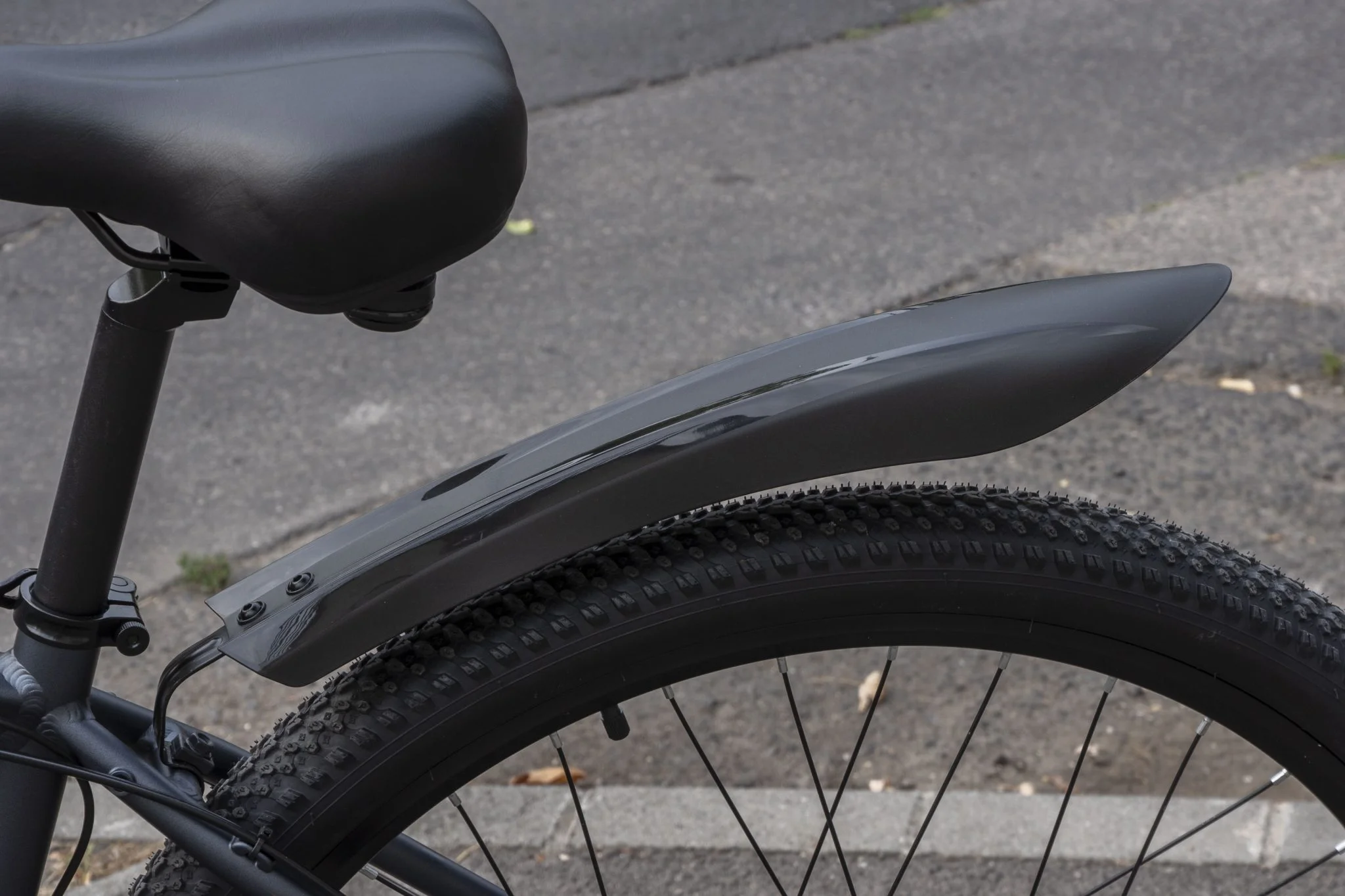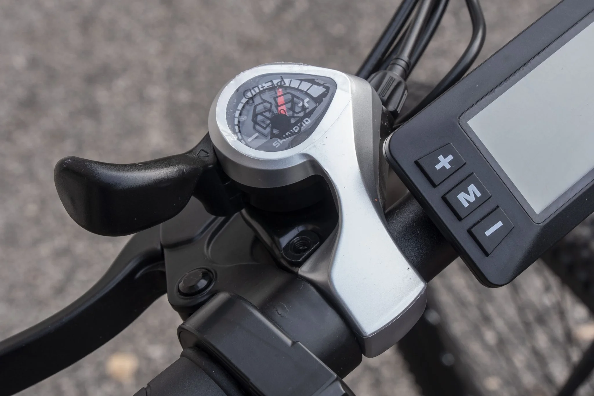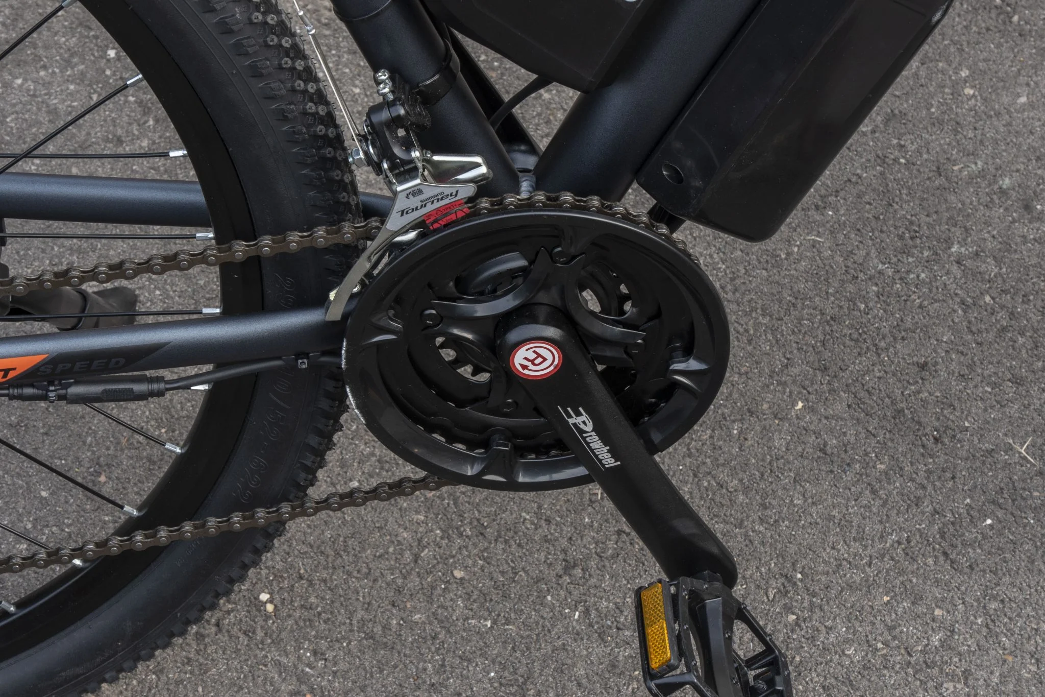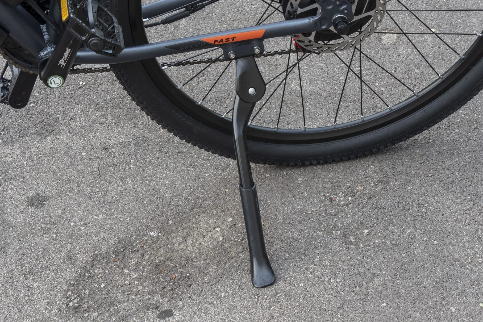 Az egy dolog, hogy 45-50 km/h-ról, amennyit ez az elektromos bringa tud, „sosem áll meg”, egyszerűen kicsi ide ez a fékteljesítmény. Az pedig egy másik, hogy itt is egy oldalról nyomja a betét a tárcsát, amit nem is lehet értelmesen beállítani, így féloldalasan fog kopni, ami a bringás látógömb szerint nem a hosszú élettartam titka. Ahogy a Duotts C29-en, itt is zsibbadt a kezem a kormánymarkolaton, ez sem áll éppen ideális szögben, a csengőt jelképező elektromos dudától meg mindenki vagy megijedt, vagy fel sem fogta, hogy ez most akkor egy dudálás volt. A legtrógerebb része az egész setupnak szerintem a műanyag pedálok, amikből kiesnek a macskaszemek. Véletlenül sem ragasztottak, hanem bepattintósak, ami azért rossz, mert ami be tud pattanni, az ki is. A Duotts esetében az első 10 kilométeren a 4 darabból elhagytam hármat, így itt már számítottam a hibajelenségre, ezért kivettem őket.