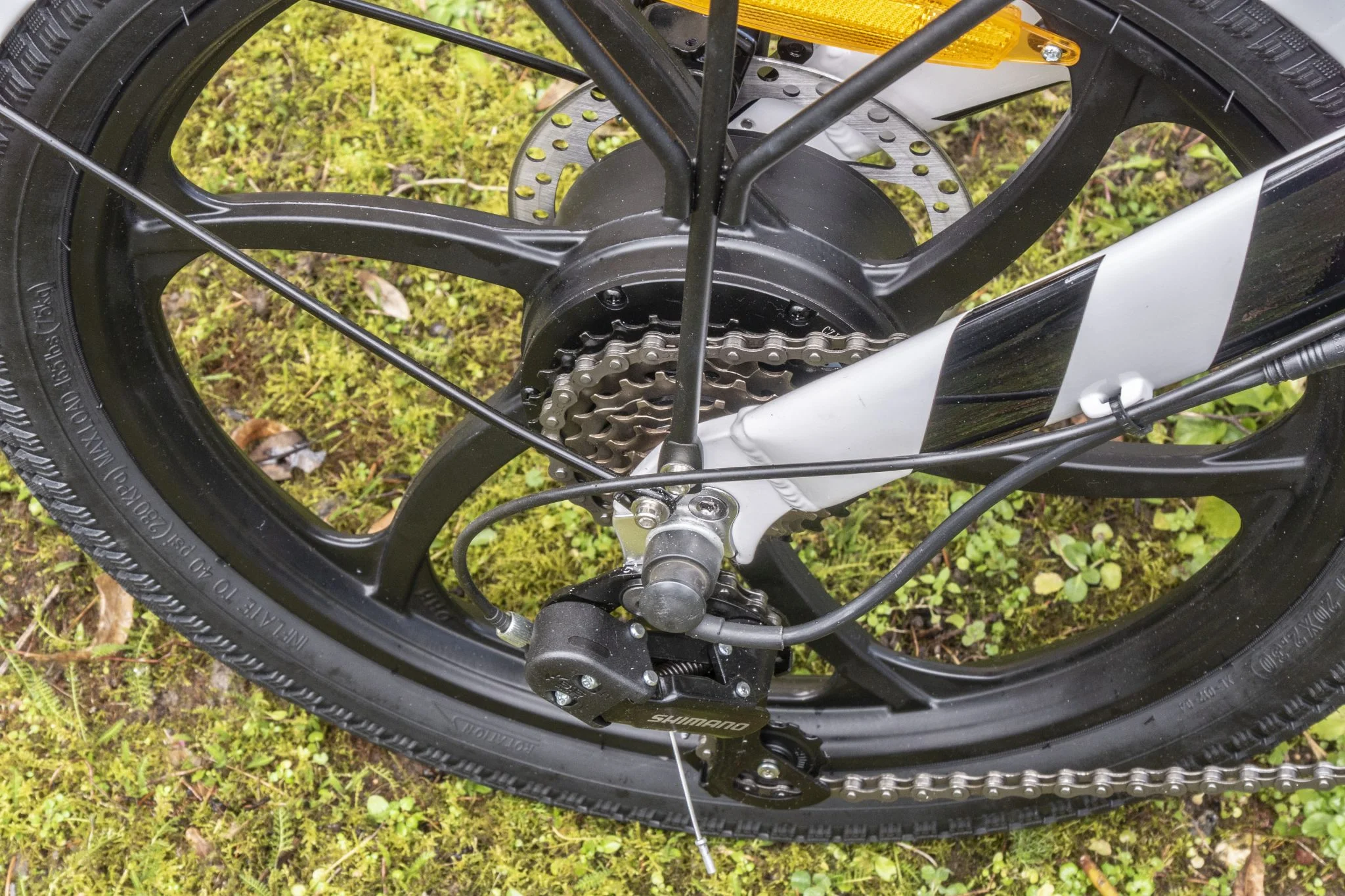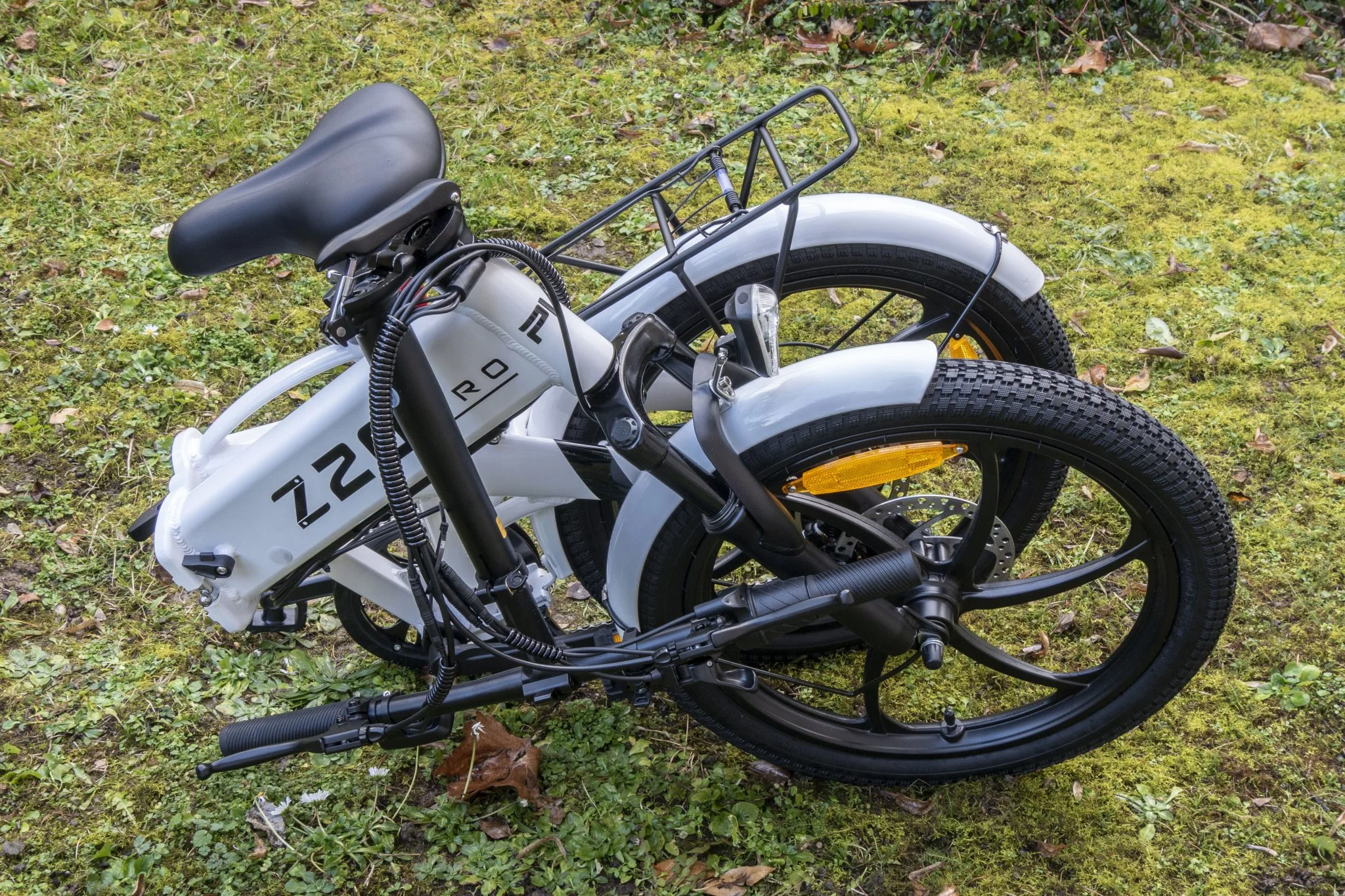 viszont mivel ez egy összecsukható modell, nagyon vékony jégen egyensúlyozott a gyártó, hogy se túl nagy, se túl nehéz ne legyen – ebből a második nem is jött össze –, és hogy jól is nézzen ki. És tényleg nem néztem ki úgy rajta, mint majom a köszörűkövön, a 16 colos konkurenseket nevetve veri és ezek a hatküllős kerekek is állatul néznek ki. A PZY Z20 Pro több helyen is összehajtható, a váz közepénél, a kormánycsőnél, sőt még a pedálok is a vázra fordíthatók. Van az alján egy fül, amin összecsukott állapotban megáll a bringa, ha a talaj nem túl laza, ezt a Himo Z20-nak például nem sikerült összehoznia, ahogyan az a tesztjében is olvasható.