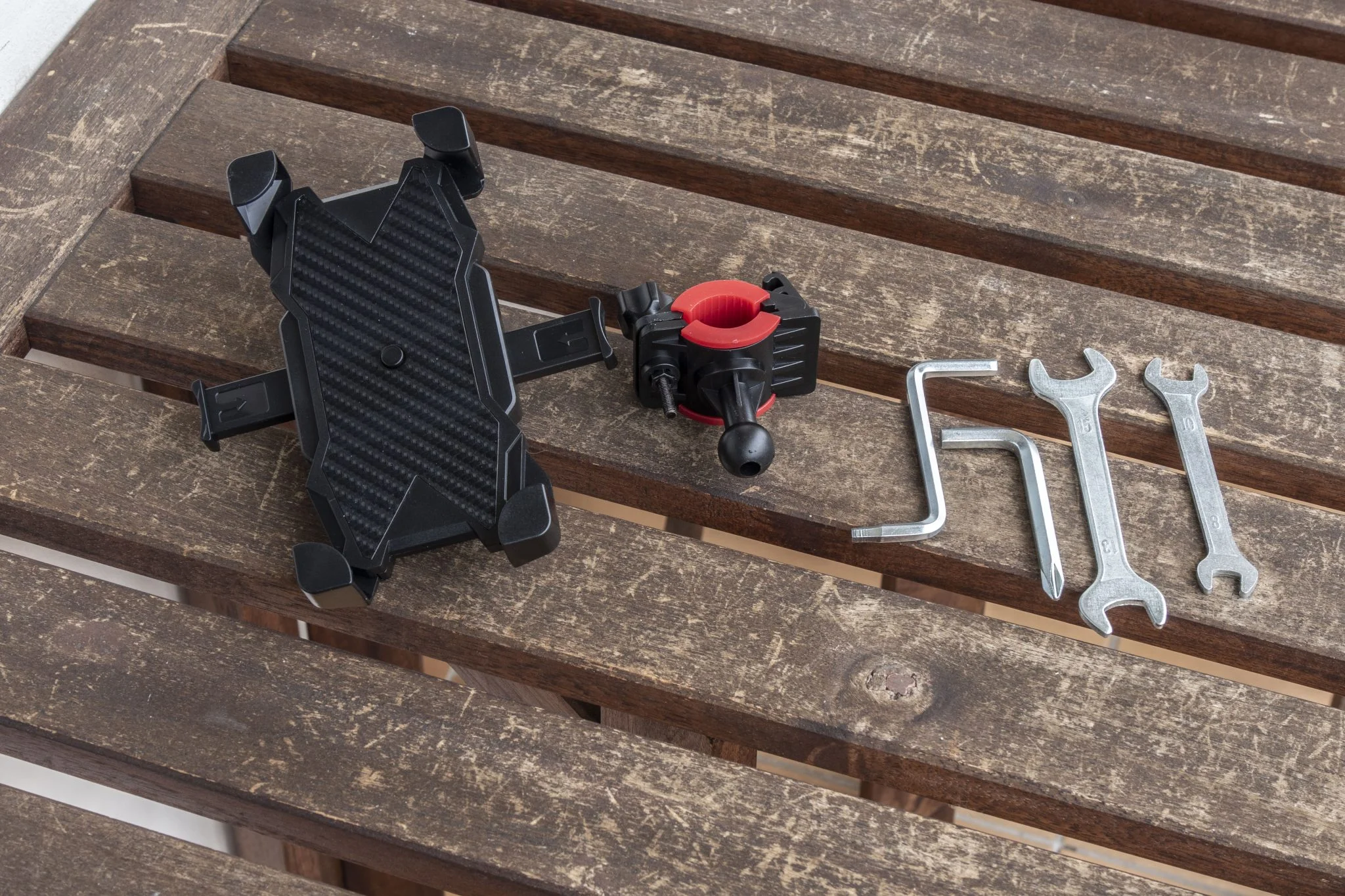 A dugókulcs nem fér oda az ívelt gátlószárakat összekötő fémdarab miatt, a csillag-villás kulcs nem megy rá, mert ívelt, önzáró anyát meg kézzel feltekerni lehetetlen. Végül egy laposfogóval fixáltam, kívülről betekertem az imbuszos fejet, illetve megkértem páromat, hogy tartsa helyén a lámpát, hiszen ez is a sárhányócsavaron ül. Igazi háromkezes rémálom, erre készüljetek.