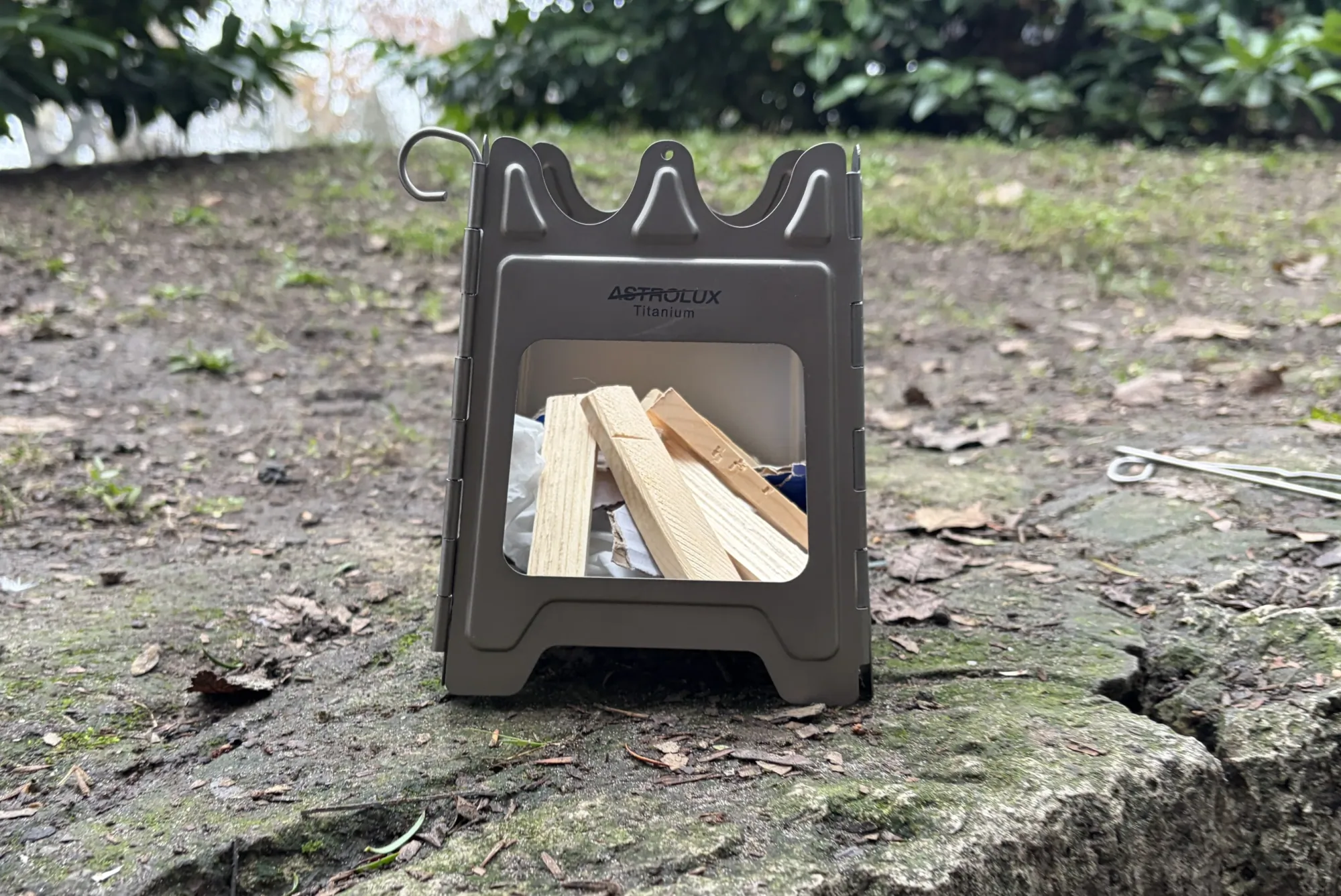 Ekkor már szinte minden készen állt arra, hogy elkezdjem használni az Astrolux Ti-BS1 kempingtűzhelyet, kivéve magát a tüzelőanyagot. Szerencsére, erről már korábban gondoskodtam: még indulás előtt összehasogattam néhány Jenga hasábot, ezzel kiváltva a nedves időjárás okozta nehézségeket.