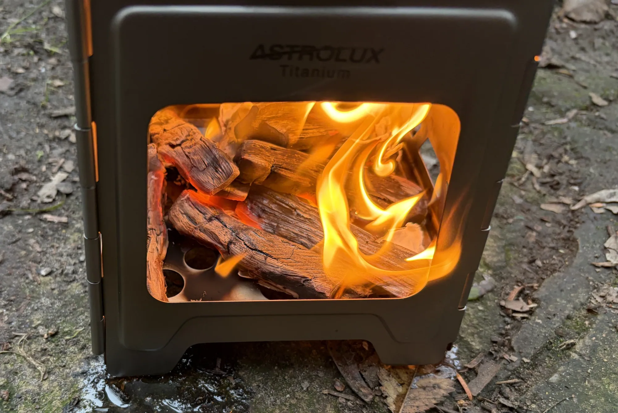 Az égésére viszont nem lehet panaszunk, a légbeömlőinek köszönhetően 20 cm-re is felcsaptak a lángok, és olykor még az oldalán is ki-ki kandikált egy-egy lángcsóva. Olyan nagy hévvel sikerült égetnie a tüzelőt, hogy 5 perc alatt már csak a parázs izzott. Sajnos a kis méretének és a gyors égésének köszönhetően, folyamatosan tüzelőanyag utánpótlásra van szüksége. Kicsit a magyar-építőipari karikatúrákra emlékeztet: amikor olyan munkát, amit egy ember is könnyedén el tudna végezi addig-addig bonyolítanak, hogy 3-4 ember is alig bír el vele. Az Astrolux Ti-BS1 kempingtűzhely esetében ez úgy nézne ki, hogy az egyik kavargatja az ételt, amíg a másik folyamatosan rakja a tüzet, miközben próbálnak nem felgyulladni az orrán-száján kicsapó lángoktól.