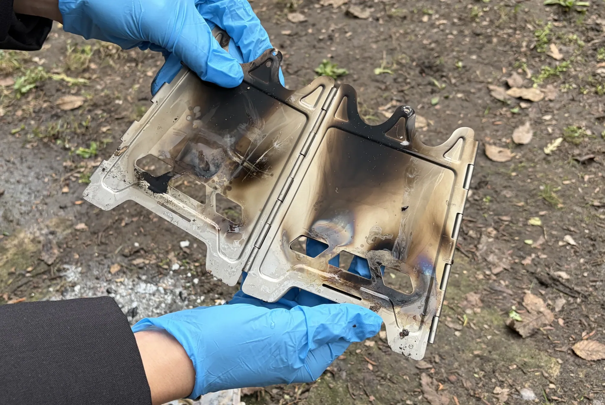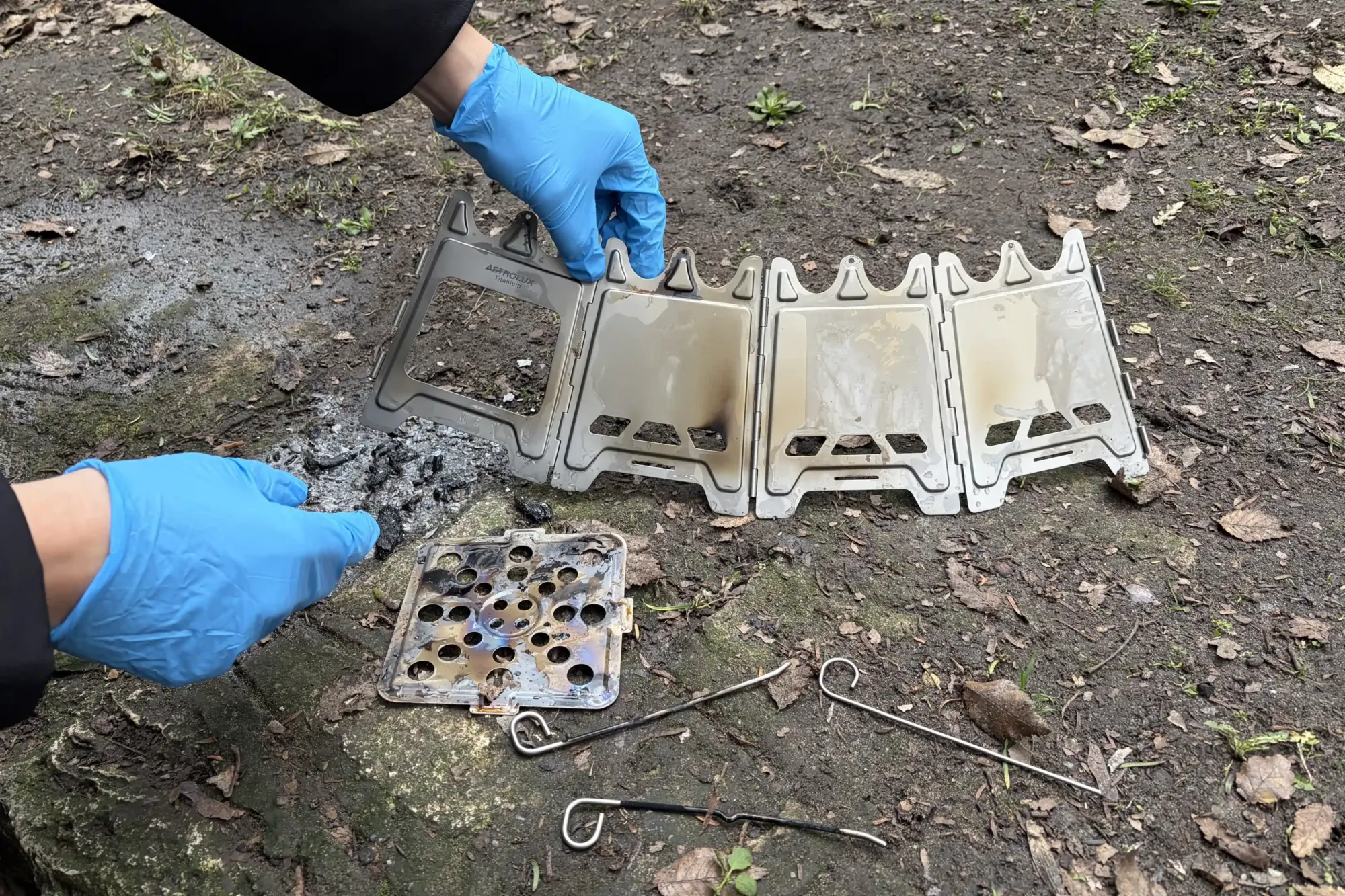 Miután végeztetek a főzéssel jöhet az elpakolás. Az Astrolux Ti-BS1 kempingtűzhely készítői erre sem igazán készültek fel. Nem elég, hogy az oldalára és a belsejébe ragadt hamutól tiszta korom lesz a kezetek, de még az állítólagos „titánium” anyagból készült hamutálca is elferdül a hő hatására és talán a rögzítőpálcák is némiképp meghajlanak.