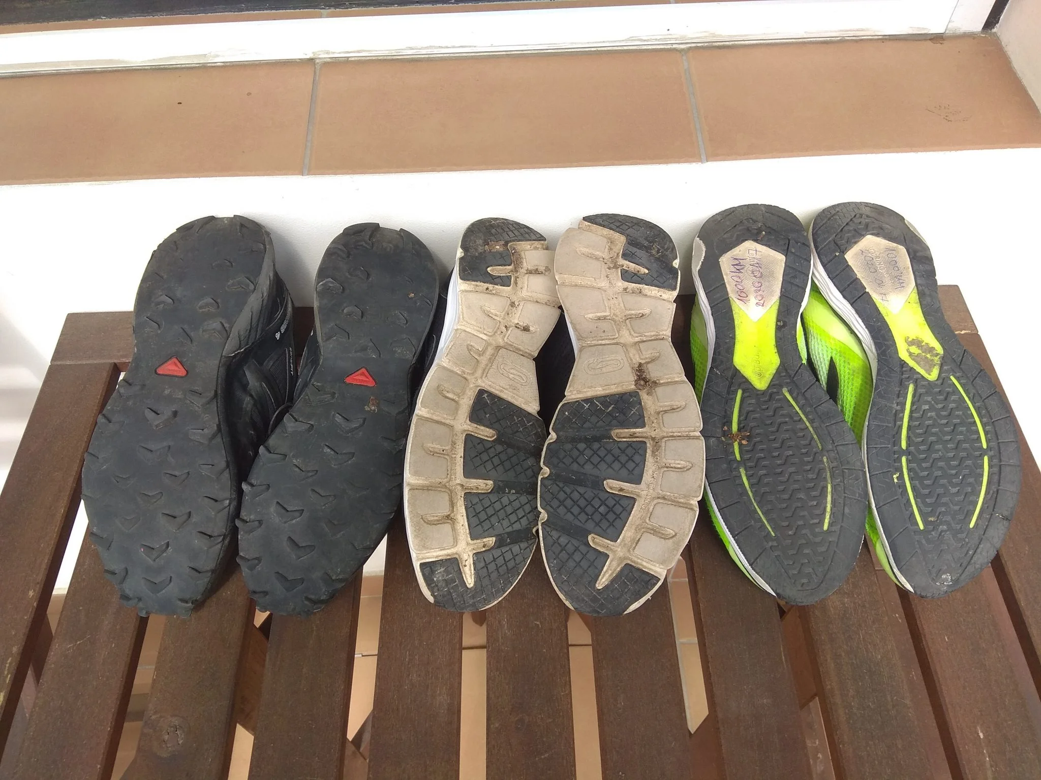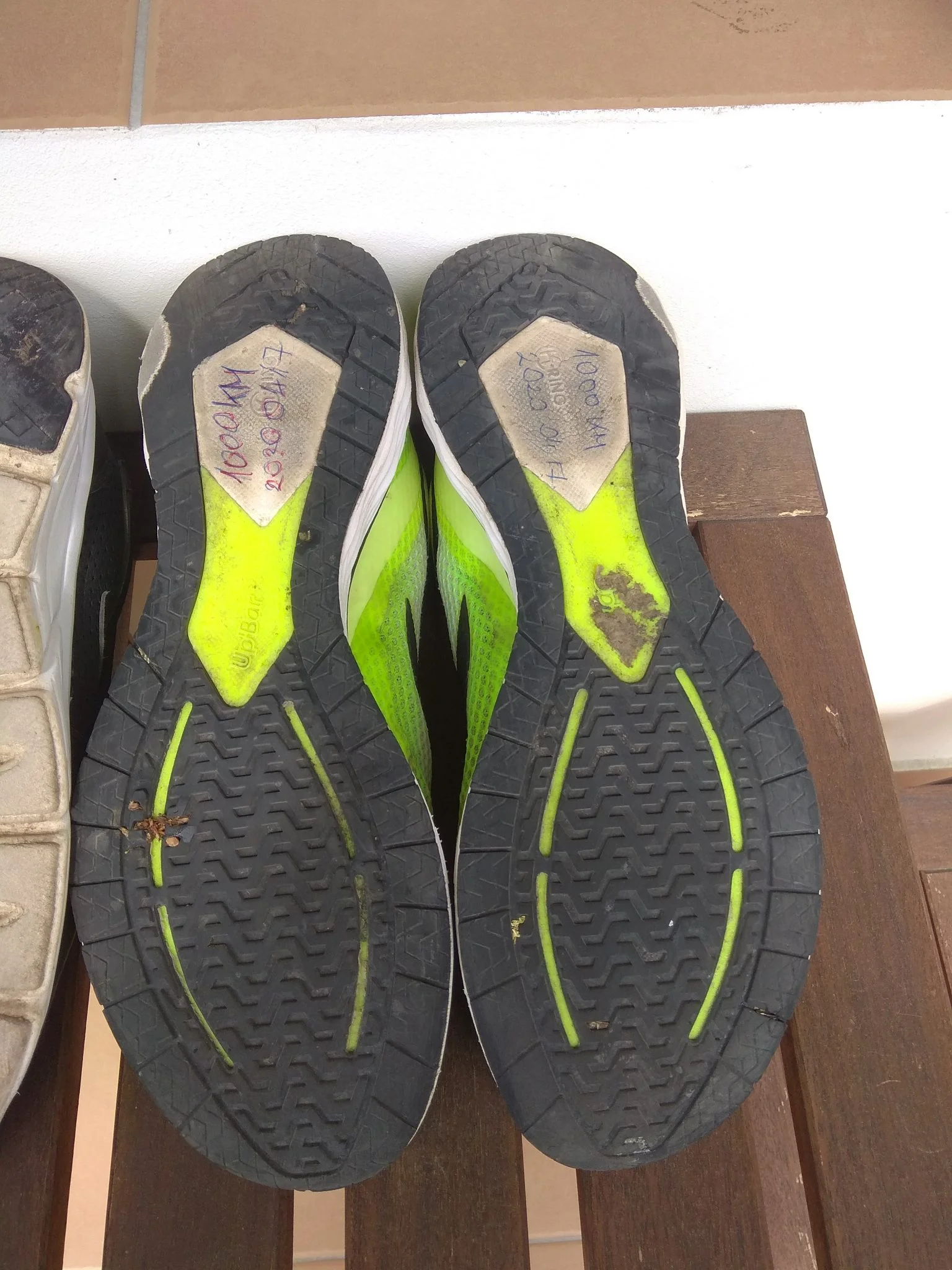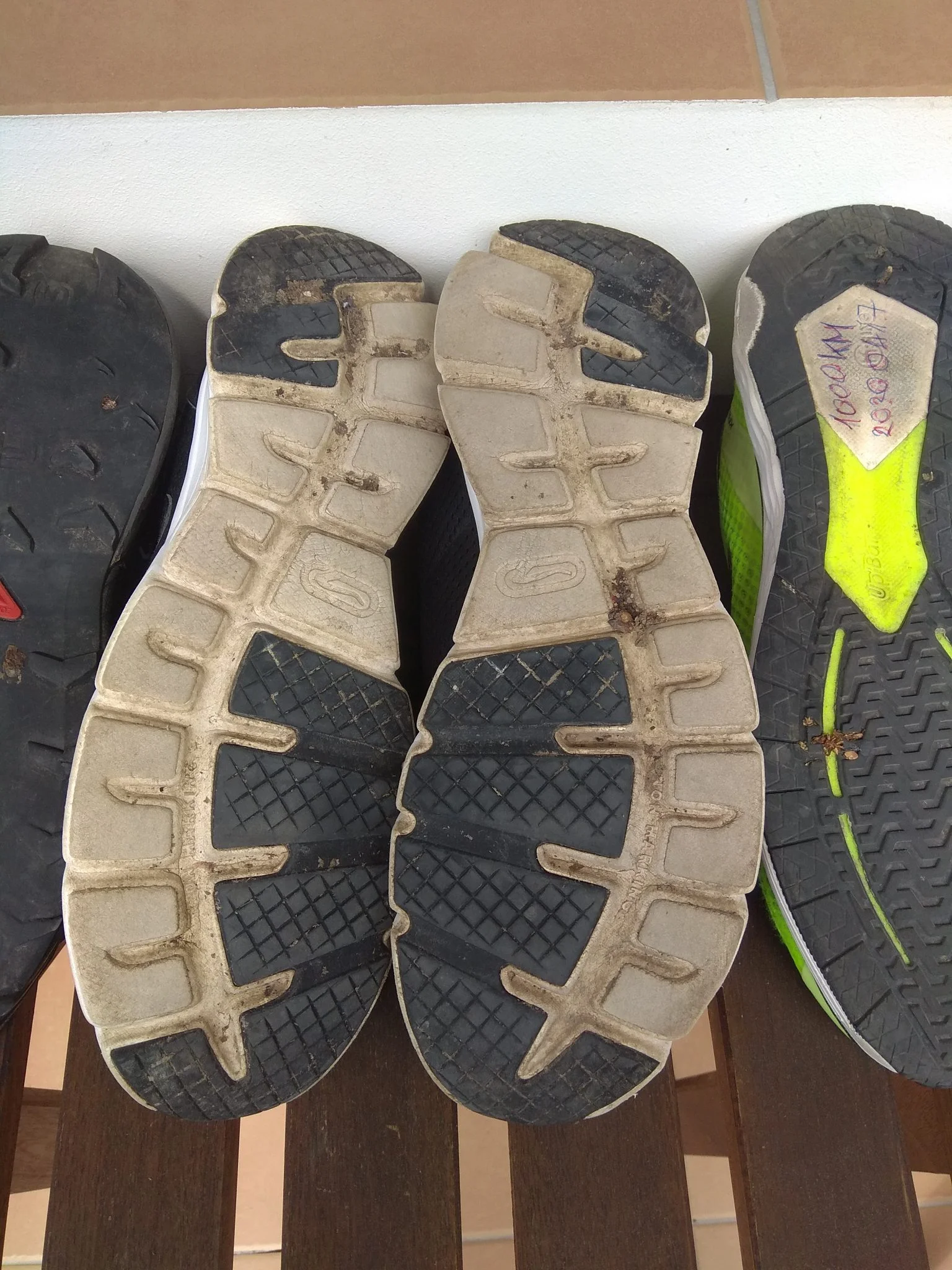A Li-Ning alap versenycipőjével – Milyen lehet a fejlesztett, ha ilyen jó az alap? – maximálisan elégedett voltam, viszont azt megbecsülni sem tudom, hogy mennyi lehet az élettartama. Mivel ritkábban fogom használni, mint a gyakorlókat, 500-600 kilivel már kiegyeznék. Szerintem ennél többet fog tudni, de ekkora távot egy évben biztosan nem futok hivatalos megmérettetéseken. Azért, hogy legyen fogalmatok arról, mikor járja a végét egy csuka, csináltam néhány fényképet az elpusztult futócipőimről. Ha durva, keresztirányú kopások vannak a talpon, nem látszik a mintázat vagy kiszakadt az oldala, akkor bőven megérett a cserére, remélem, a képeim segítenek ennek felderítésében.