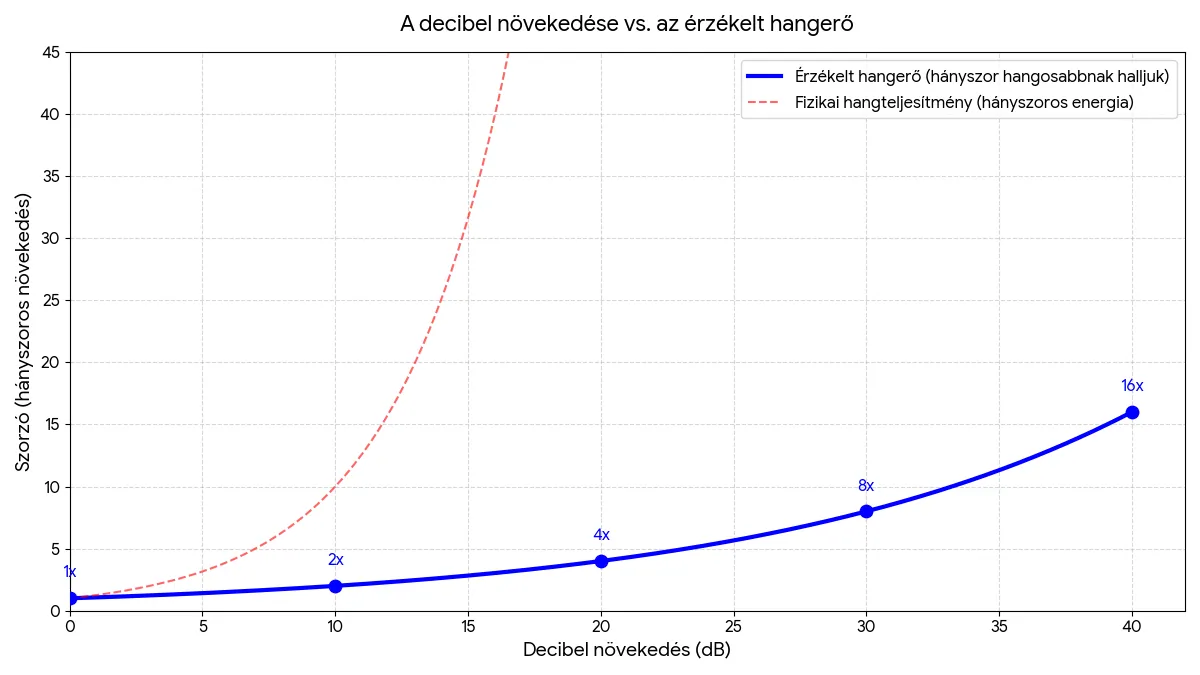 A decibel (rövidítve dB) egy logaritmikus mértékegység, amely két fizikai mennyiség, leggyakrabban a hangnyomás vagy a teljesítmény, egymáshoz viszonyított arányát fejezi ki. Mivel az emberi hallás nem lineárisan, hanem logaritmikusan érzékeli a hang erősségét, a decibel skála praktikusabb a mindennapi használatra: segítségével a rendkívül széles tartományban mozgó értékek (a halk suttogástól a repülőgép hajtóművéig) kezelhető, jellemzően 0 és 140 közötti számokkal leírhatóvá válnak. Fontos megjegyezni, hogy a logaritmikus jelleg miatt minden 10 decibeles növekedés tízszeres teljesítménynövekedést, de az emberi fül számára nagyjából csak kétszeres hangerő-emelkedést jelent.