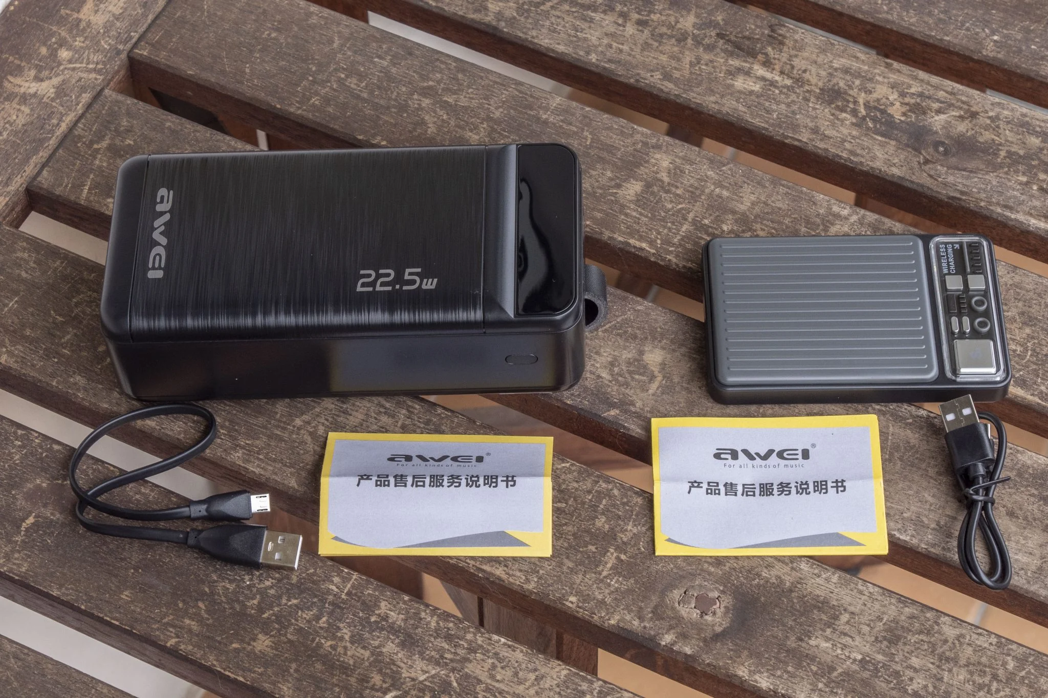 Ami még izgalmas, hogy ez befele is igaz, vagyis a Type-C porton keresztül 22,5 W-tal 2,5 óra alatt fel lehet tölteni a telepet. Ezeket nem a mellé adott sajtóanyagból bogarásztam ki, ugyanis a leírása csapnivaló, és a sok bla-blán kívül egyetlen értelmes műszaki adatot sem tartalmaz, a weboldaluk meg még a terméket sem, szóval köszi Awei.