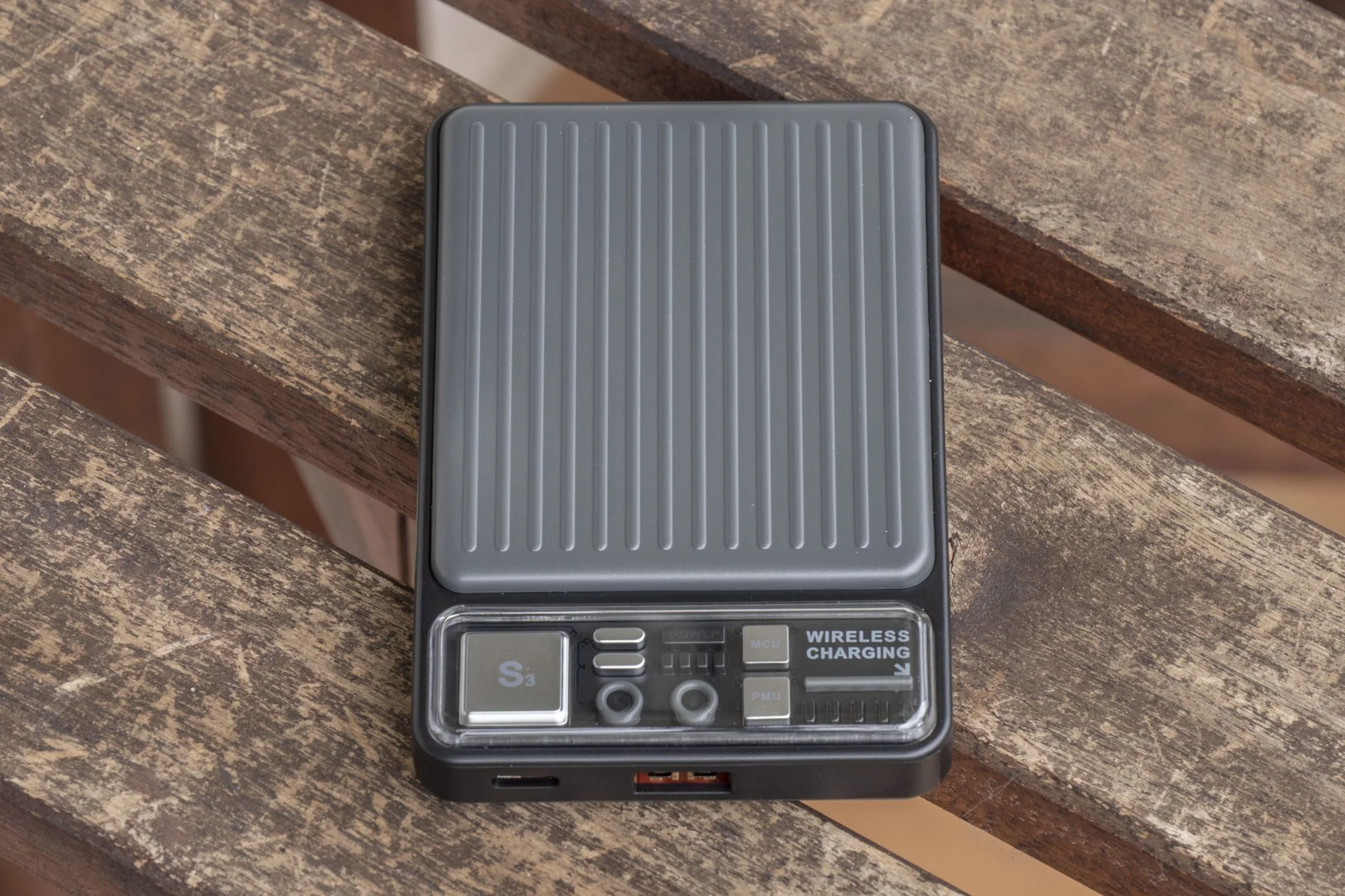 ami olyan mint a japán autókban a középkonzolon az óra: muszáj, hogy ott legyen. Jobb oldalt van egy bekapcsoló gomb, ami a csík panelt éleszti fel, és mutatja a töltöttséget, illetve, ha valamit rácuppantotok, akkor a töltési protokollt is jelöli kicsi piktogramok formájában. A kapacitása megdöbbentően nagy, 50 000 mAh, és ennek megfelelően rengeteg portot is raktak rá. Egy korlátozó tényező viszont van: maximum 22,5 W-tal tud tölteni, ami a mai világban, ahol már az alsó-közép kategóriában is 33 meg 66 W-os gyorstöltések vannak, igencsak karcsú. Szóval ezt a nagy dögöt az életben nem fogjátok lemeríteni ezzel a teljesítménnyel.