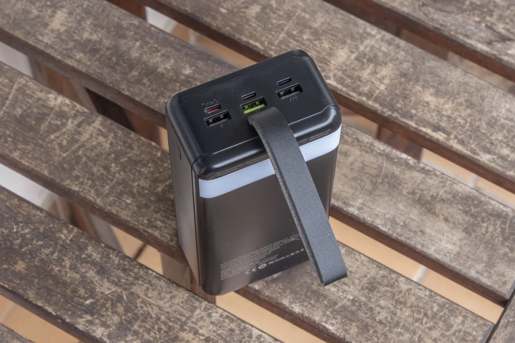 Mivel rengeteg port van rajta, feldobáltam rá mindenféle eszközöket és előjött a legnagyobb koncepcionális hibája a terméknek: összesen 22,5 W-tal tud tölteni, így egyes műszaki cuccaimra nevetséges mennyiségű teljesítmény maradt. Egyszerűen 50 000 mAh-t lemeríteni 22,5 W-tal olyan sokáig tart, hogy nem éri meg telepakolni a portjait, kivéve, ha nagyon kis energiaigényű eszközöket – okosóra, fülhallgató stb. – akartok tölteni. Arra meg minek 50 000 mAh kapacitás? Szóval egy kicsit önmaga farkába harapó kígyóként kell azokra a power bankokra tekinteni, amelyek kis teljesítményt pumpálnak ki, nagy kapacitás mellett. Vagy legyen bika – PD 65 W -, vagy legyen kisebb a kapacitása. Ugyanis ha az 50 000 mAh-t 5 darab 10 000 mAh-s telep adja le, akkor máris 5×22,5 W áll rendelkezésre. Persze nem ennyiért, mint amennyibe ez kerül, ugyanis meglepően olcsó.