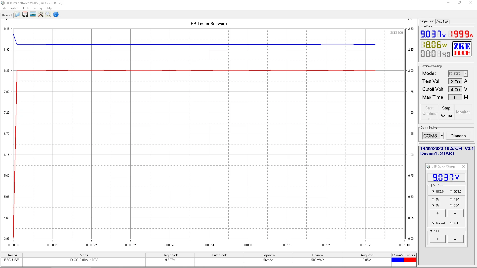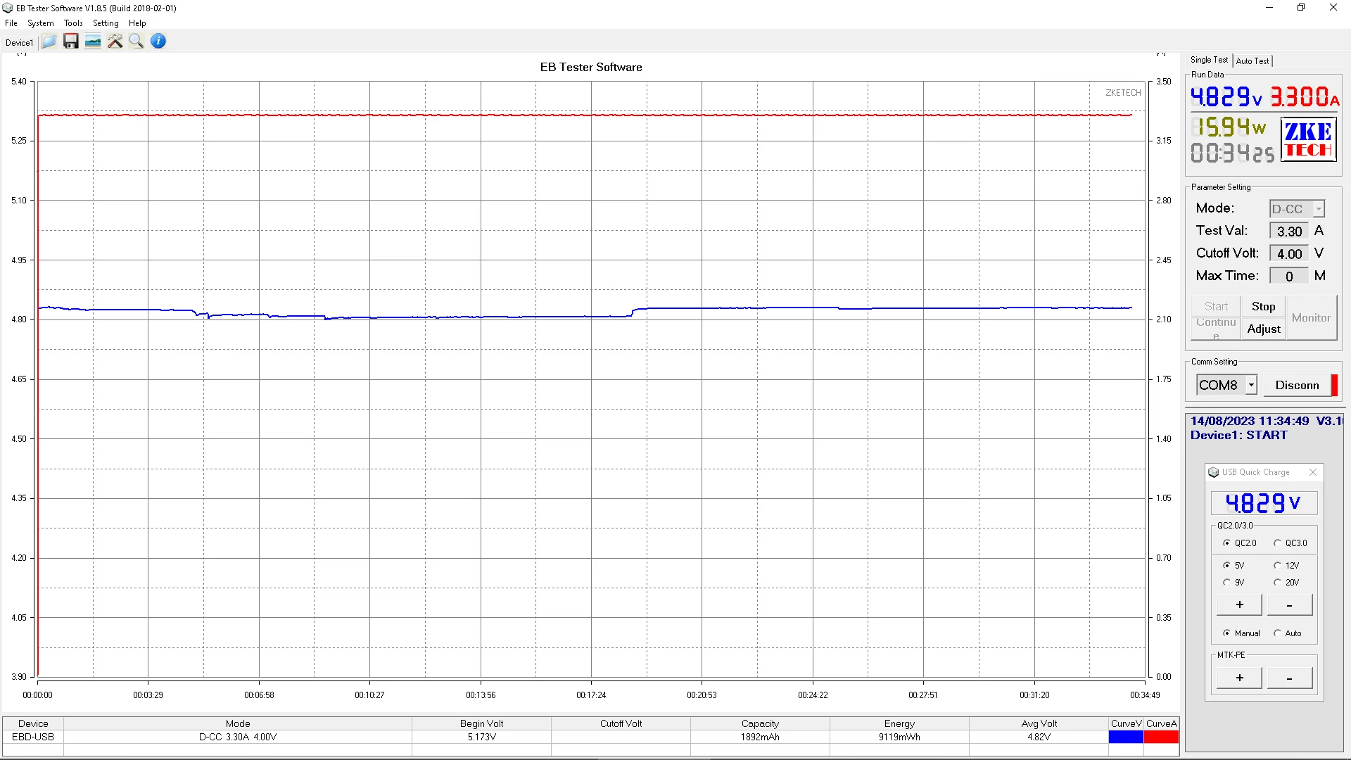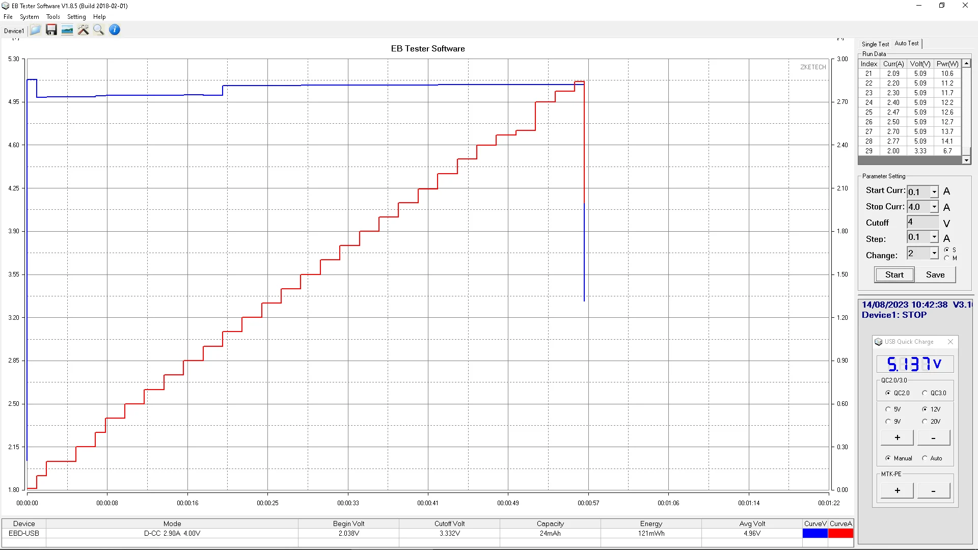 ezt az FNIRSI FNB58 tökéletesen megmondja. Szinte mindent, kivéve a PD és a Super VOOC szabványokat, előbbiért kár. Viszont a legtöbb telefontulajdonos örülhet, mert ők viszonylag gyorsan tudnak majd tölteni. Aztán, ha már fent voltak rajta a teszterek, ráküldtem egy 30 perces, 20 W körüli terhelést, hogy lássam, melegszik-e. És sajnos igen, 25 perc után a feszültség is beszakadt, és az idő előrehaladtával kúszott szépen lefelé, ami nem annyira jó jel.