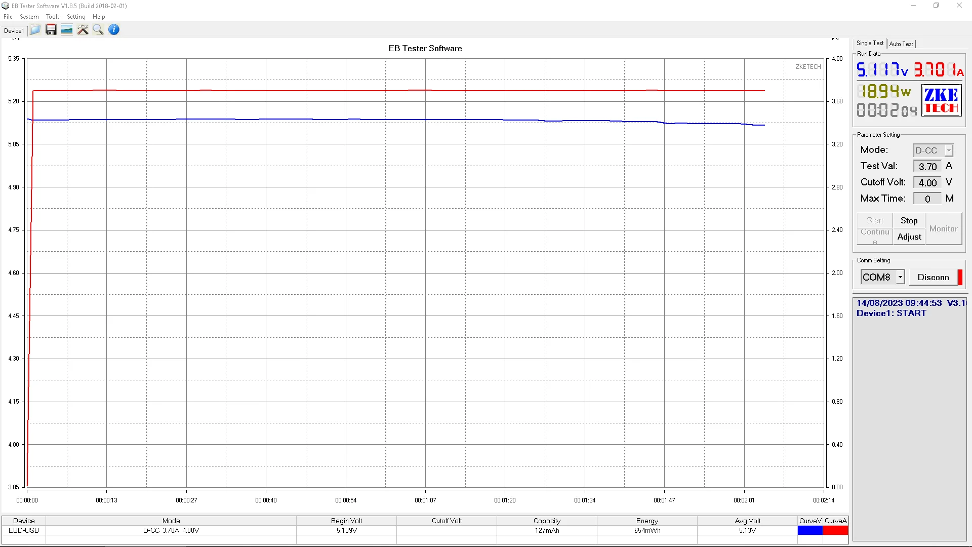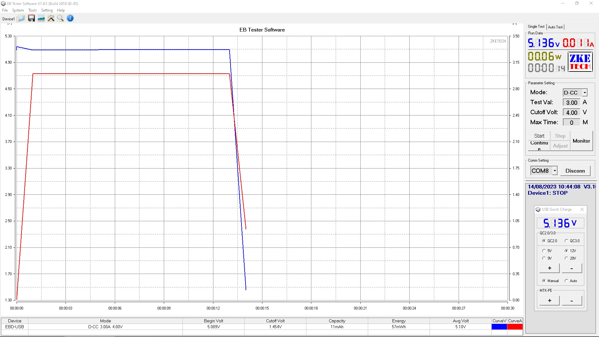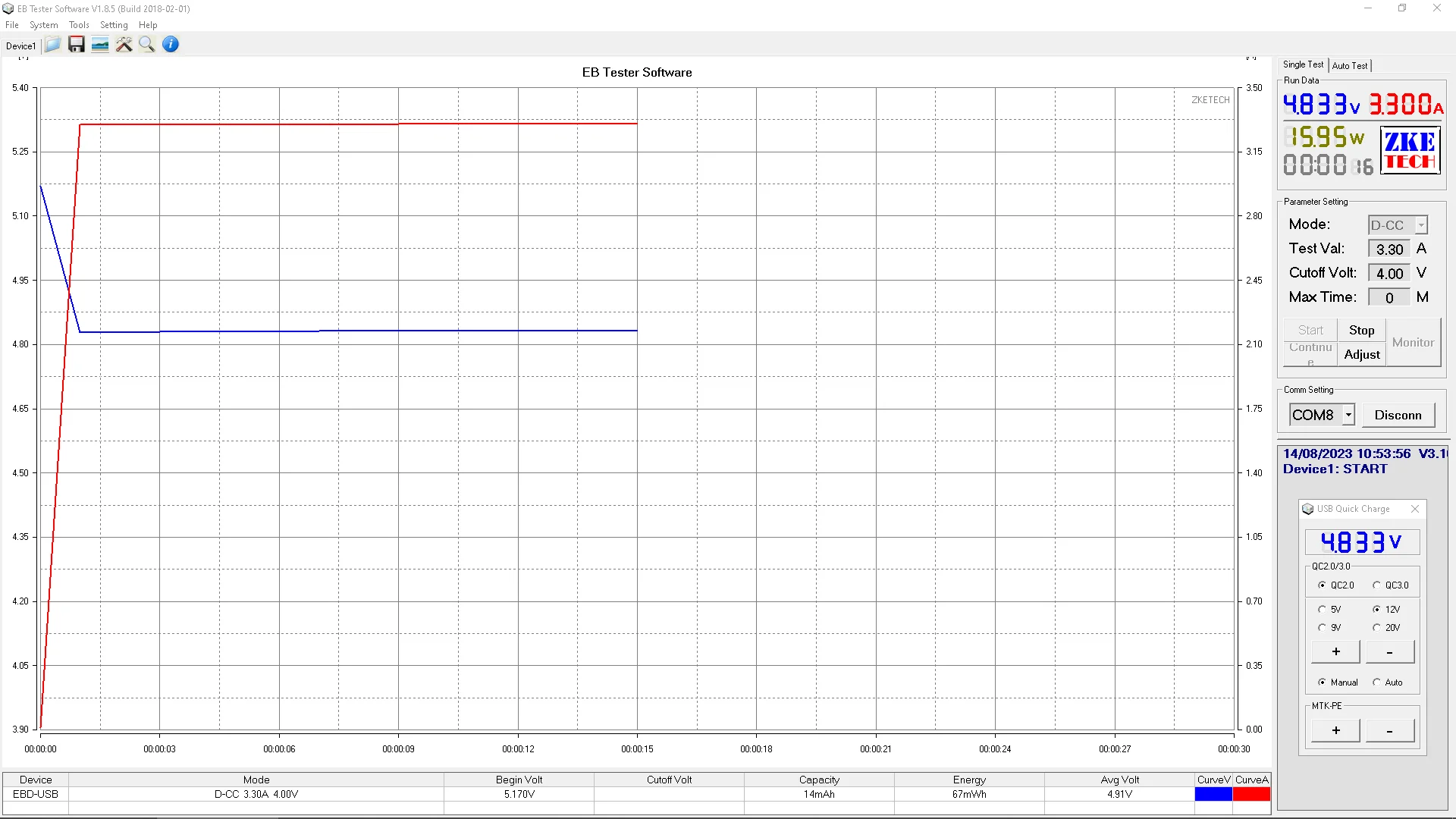 ezt az FNIRSI FNB58 tökéletesen megmondja. Szinte mindent, kivéve a PD és a Super VOOC szabványokat, előbbiért kár. Viszont a legtöbb telefontulajdonos örülhet, mert ők viszonylag gyorsan tudnak majd tölteni. Aztán, ha már fent voltak rajta a teszterek, ráküldtem egy 30 perces, 20 W körüli terhelést, hogy lássam, melegszik-e. És sajnos igen, 25 perc után a feszültség is beszakadt, és az idő előrehaladtával kúszott szépen lefelé, ami nem annyira jó jel.
