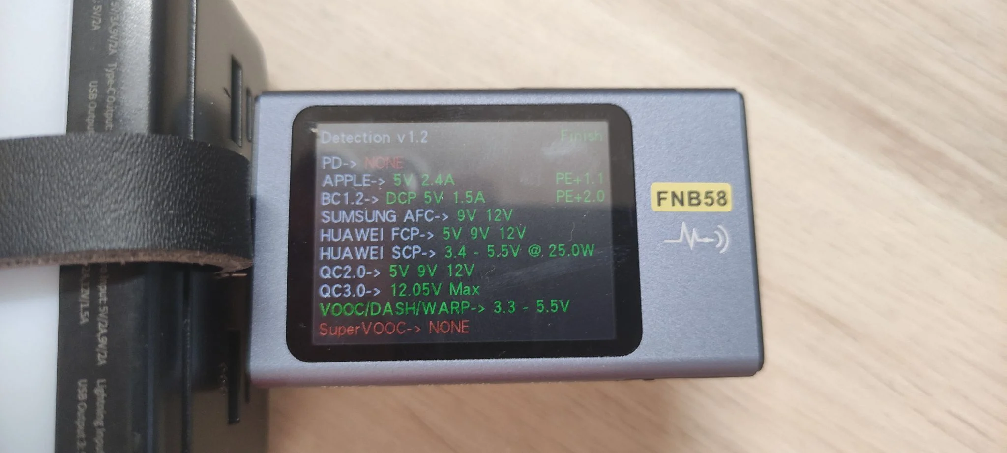 Az első dolog az volt, hogy a teszterrel megnéztem, milyen gyorstöltési szabványokat támogat,