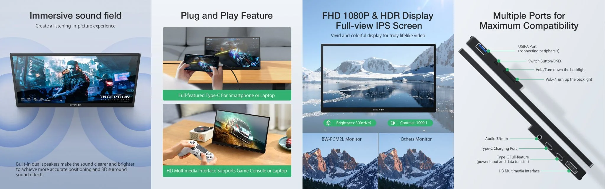 BlitzWolf BW-PCM2L hordozható monitor teszt