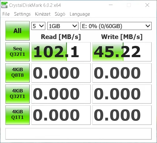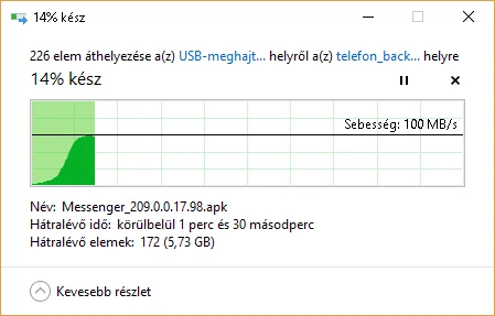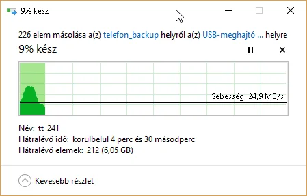 Természetesen az sem mindegy, hogy egy szintetikus teszt fut, vagy pedig egy valós írás/olvasás, ezért a Windowsos fájlkezelővel is pakoltam rá adatokat. Nyilván még van néhány tényező, ami befolyásolhatja a végeredményt, de átlagos használat mellett szerintem a lenti adatokat el lehet fogadni mérvadónak.