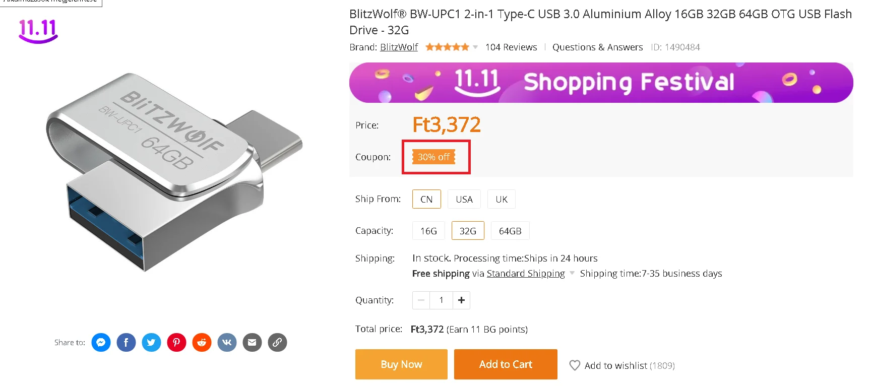 Adathordozóra mindenkinek szüksége van, jól tudja ezt a BlitzWolf is. Éppen ezért hoztak ki egy szériányi, flash alapú, dupla csatlakozóval – USB-A és Type-C – ellátott USB 3.0 szabványt támogató pendrive-ot, amit a BW-UPC1 névre kereszteltek el. Nálunk a 64 GB-os verzió járt, aminek az árát a termékoldalon található 30%-os kuponnal csökkenthetitek 4500 Ft-ra.