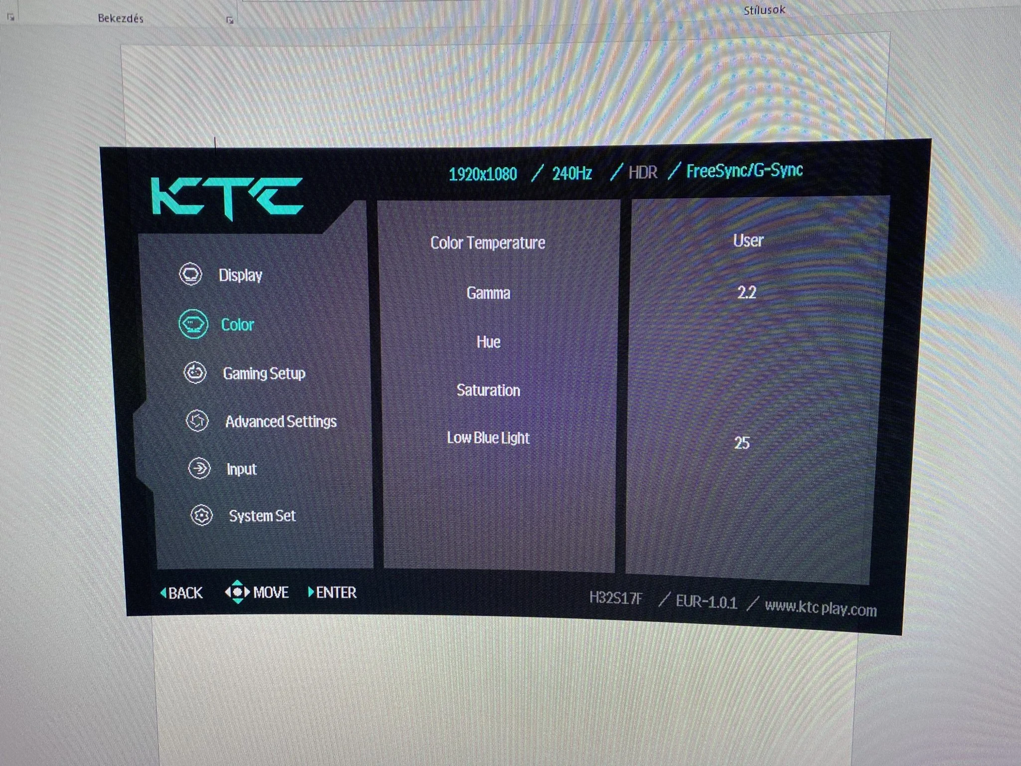 A KTC H32S17F támogatja a HDR 10-et, 8 bites színmélység mellett, a DCI-P3 színskálát pedig 98%-ban, míg az sRGB színskálát 125%-ban képes lefedni. Egy szó, mint száz: szép élénk színekre számíthatsz, bármit is nézel rajta. A kijelzőknél kulcsadat a fényerő is, pontosabban a fénysűrűség, ami a tesztalany esetében 350 candela/négyzetméter. Ez egy közepes értéknek számít, mert általában 500 felett lehet viszonylag soknak tekinteni, például a prémium tableteknél ez az érték 1000 feletti is lehet. Megnyugtatok mindenkit, hogy a valóságban ez annyit takar, hogy beszűrődő napfény mellett is teljesen használható a monitor, anélkül dolgozhatsz vagy játszhatsz rajta, hogy elvesznének a sötét színek. Ebben a 3500:1-es kontrasztarány is közrejátszik, bár általában az AMOLED és az IPS kijelzők nyújtják a legjobb kontrasztot és fényerőt.