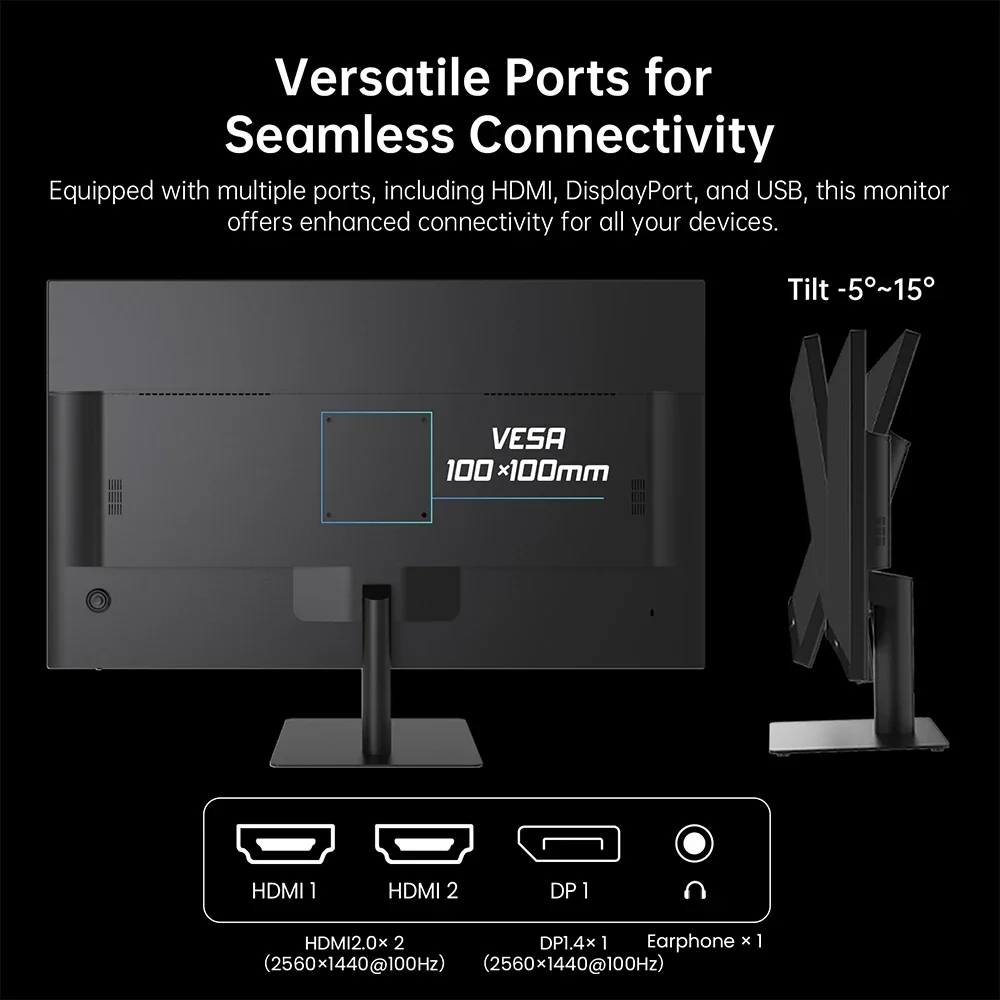 Szemkápráztató LED-világítás erre a modellre sem került, aki látott már KTC monitort, az ezen meg sem lepődik. A monitor talpa szerencsére nem akkora, mint a H27S25E esetén, teszt itt, így nem foglal túl sok helyet az asztalodon. Ha mégis inkább arra vágysz, hogy semennyit se foglaljon, akkor örülni fogsz a hátoldalán lévő, 100×100 milliméteres VESA furatmintáknak, mert ezeknek köszönhetően felszerelheted fali konzolra vagy monitorkaros állványra. Az állványa egyébként sem túl ergonomikus, csupán -5° és +15° fok között dönthető előre-hátra – más pozícionálásról ne is álmodj.