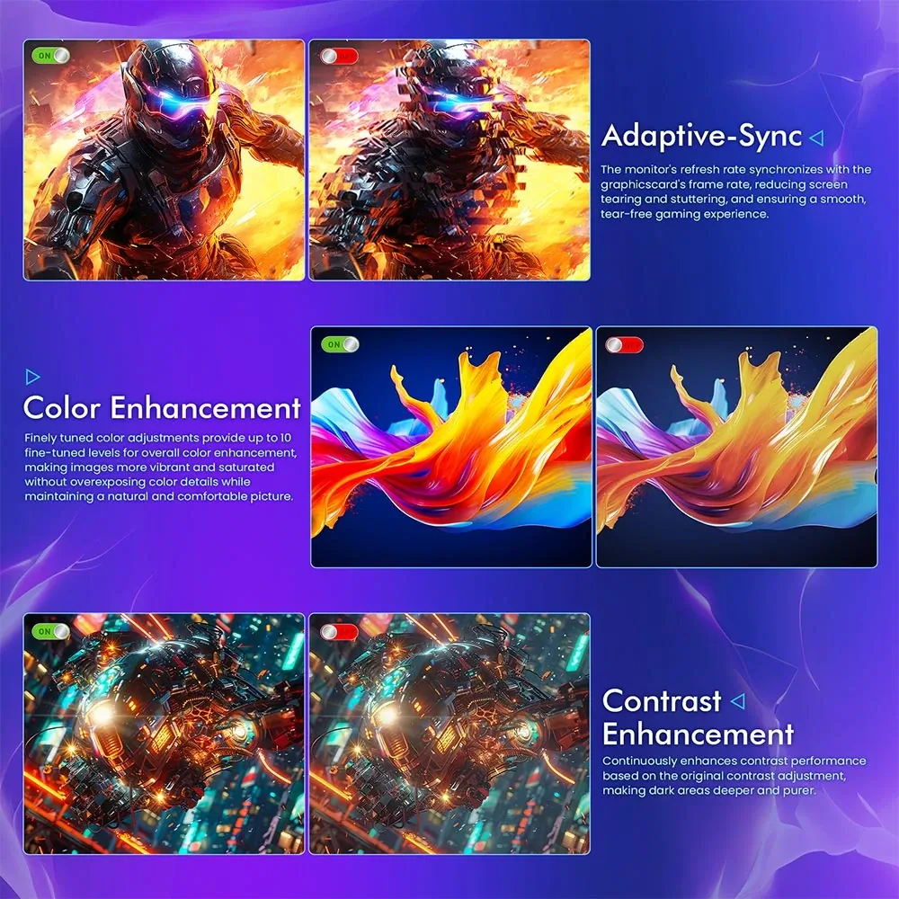 A mozgásmegjelenítés minőségét nemcsak a 240 Hz-es frissítés adja, hanem az is, hogy a panel 1 ms GTG válaszidőre képes. Ez a gyors pixelváltás azért fontos, mert így jóval kisebb az esélye a maszatolódásnak vagy a „ghostingnak” gyors jeleneteknél. A magas képfrissítés és az alacsony válaszidő együtt kimondottan jól működik azokban a játékokban, ahol minden ezredmásodperc számít, legyen szó lövöldözésről vagy tempós autóversenyről. A simaságot tovább javítja az Adaptive-Sync támogatás, amely a monitor és a videokártya között teremti meg az összhangot, így nincs képtörés és ritkább az apró akadozás. Az eredmény egy stabilabb, folyamatosabb kép, minden játékos legnagyobb örömére.