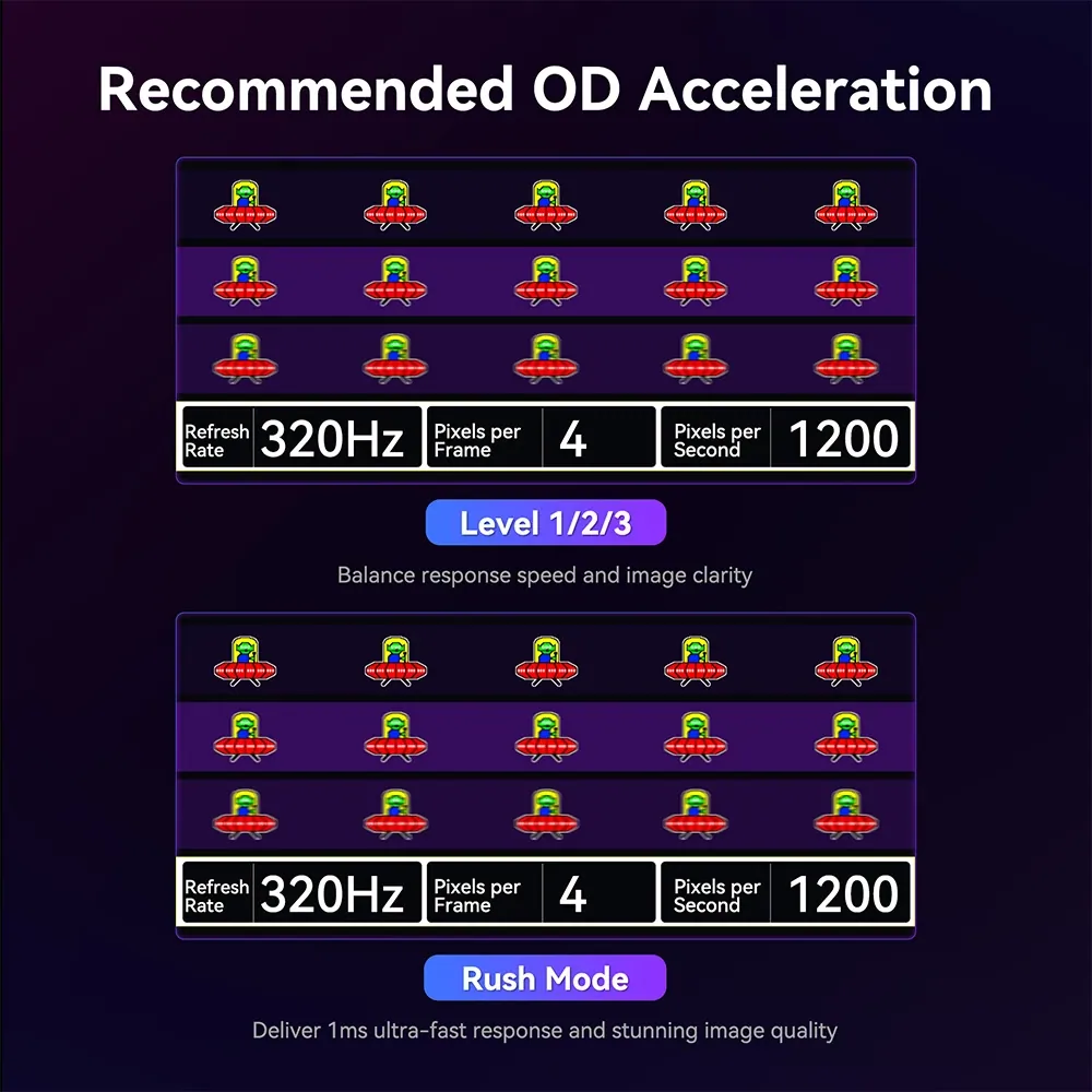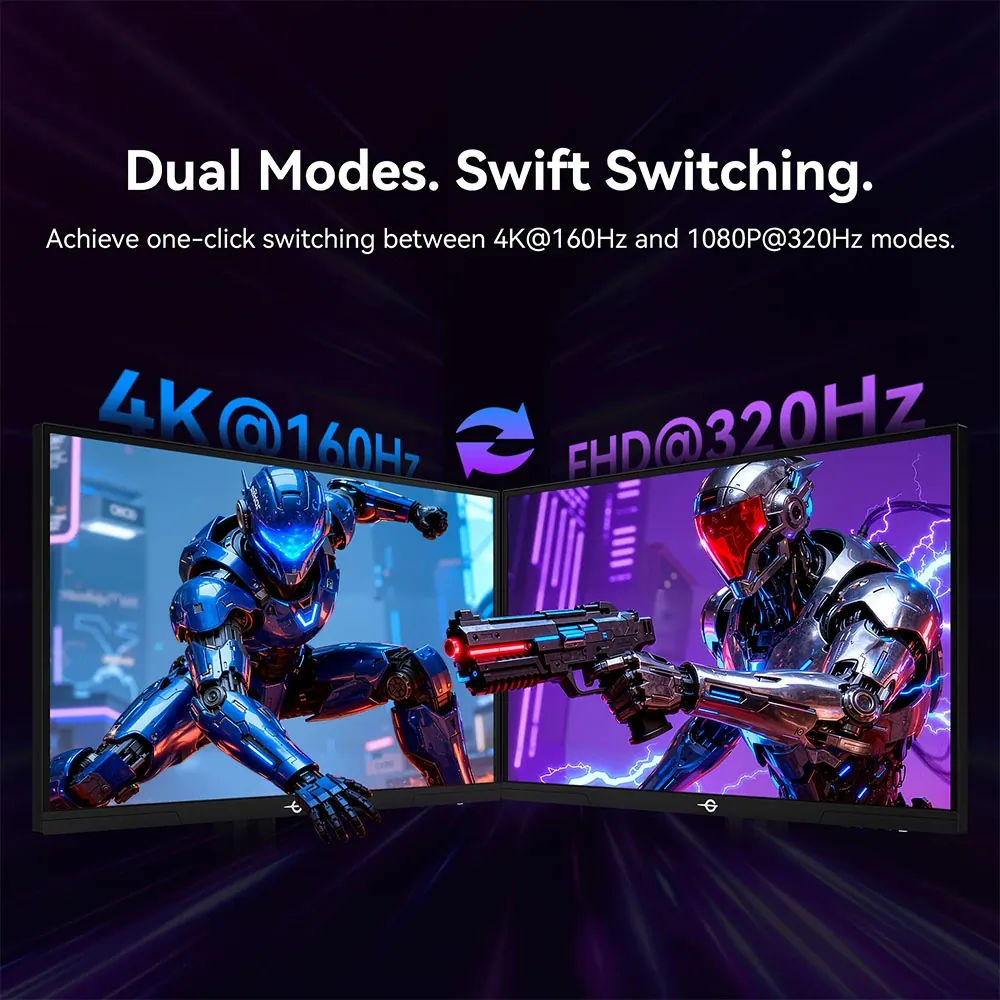 Azért azt minden gamer tudja, hogy kompetitív játékra ezek eléggé luxus számok, leginkább a hardver miatt. Ekkora felbontás mellett a monitor 160 Hz képfrissítésre képes, ami elég baráti, de ez még tovább fokozható, ha valakinek kevés lenne: a korábban említett dual módnak köszönhetően egyetlen egy gombnyomásra (jó, inkább háromra) átállítható Full HD felbontásra, azaz 1920×1080 pixelre, ahol már 320 Hz-es képfrissítés fogad. Ha mindezt elbírja a videókártyád, akkor valószínűleg szemmel látható különbséget fogsz tapasztalni. Nyilván a felbontást és a képfrissítést külön-külön szintén állítgathatod, de ez a gyors váltás ideális, ha filmnézés után rögtön játékba kezdenél.