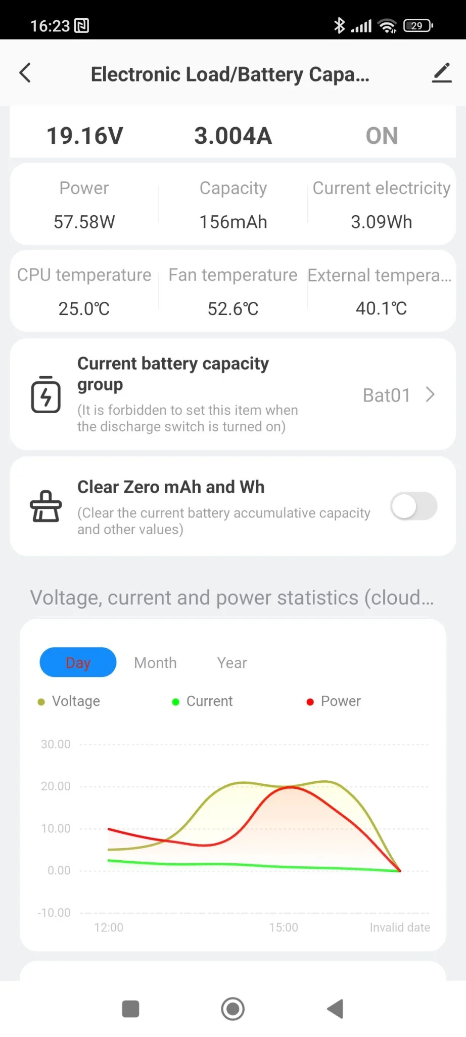 Jöhetett egy komolyabb, terhelőellenállásos teszt. Korábban egy ZKE EB Tester nevű szoftverrel és a hozzá tartozó kütyüvel teszteltünk, ám ezt az évek során és az új szabványok bevezetésével kinőttük, így váltottunk az ATORCH DL24EW 150 W-os, WiFi képes, Tuya appal párosítható megoldásra, aminek egyes típusai akár 600 W-ig is terhelhetők. Ebben a cuccban az a jó, hogy mobilos appal is megy, így nem kell egy tonnányi kábellel PC-hez kötni – de egyébként lehet és van windowsos alkalmazása is -, hanem szinte bárhol lehet vele mérni egy teló segítségével. A dolog lényege az, hogyha az ATORCH terhelőellenállást a BlitzWolf BW-i100-hoz csatlakoztatjátok, akkor megterhelhetitek a töltőt, illetve kiprovokálhatjátok a különböző védelmek bekapcsolását.