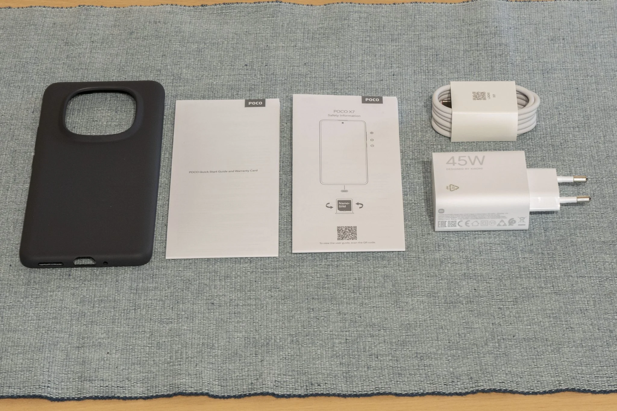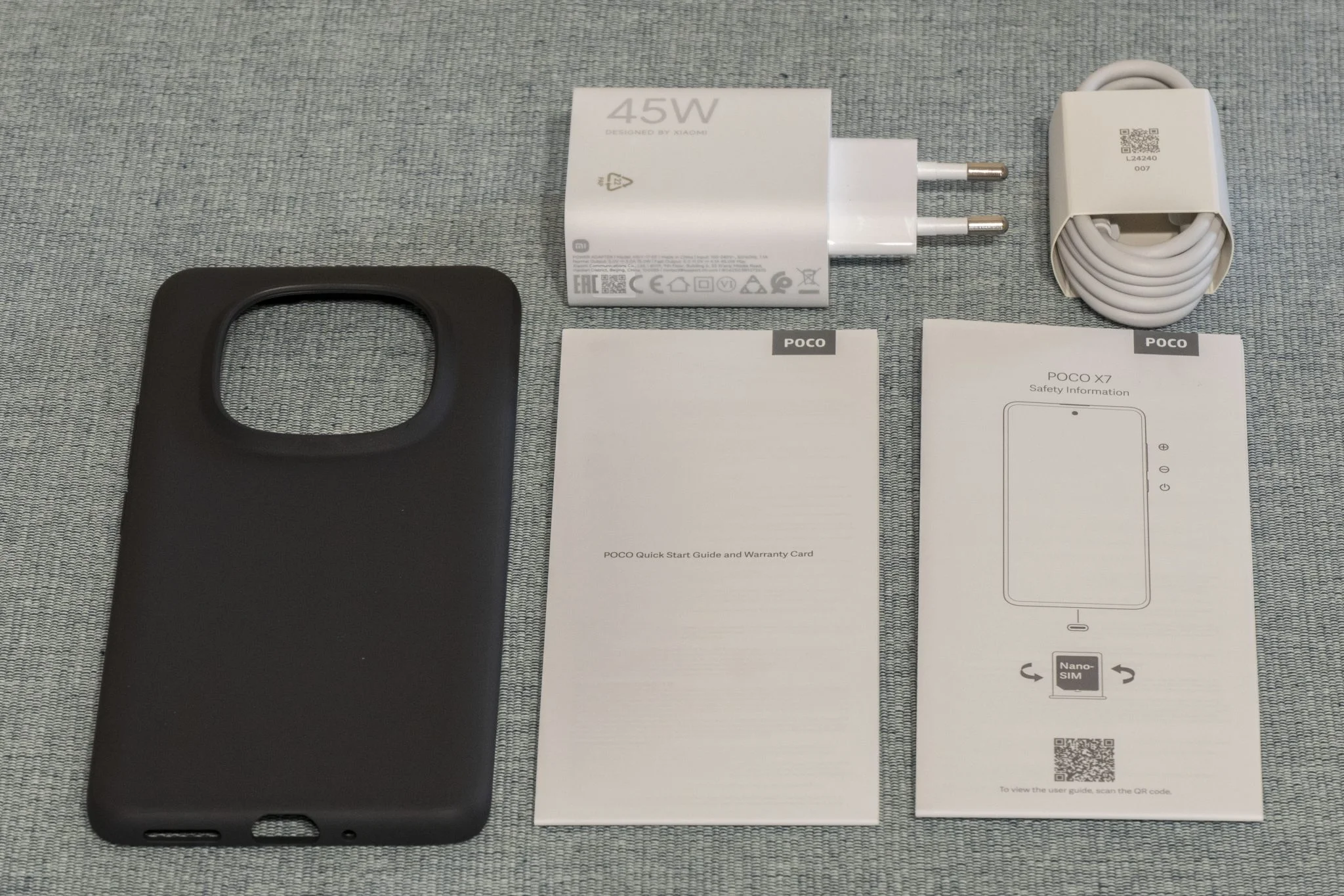 - Töltő a dobozban, 45 W-os gyorstöltés