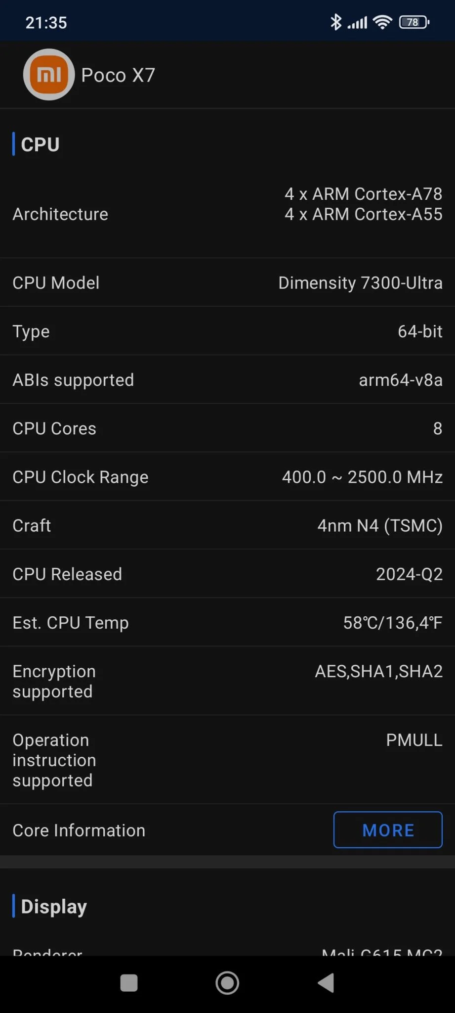 - GPU: Mali-G615 MC2 / Mali-G720 MC7