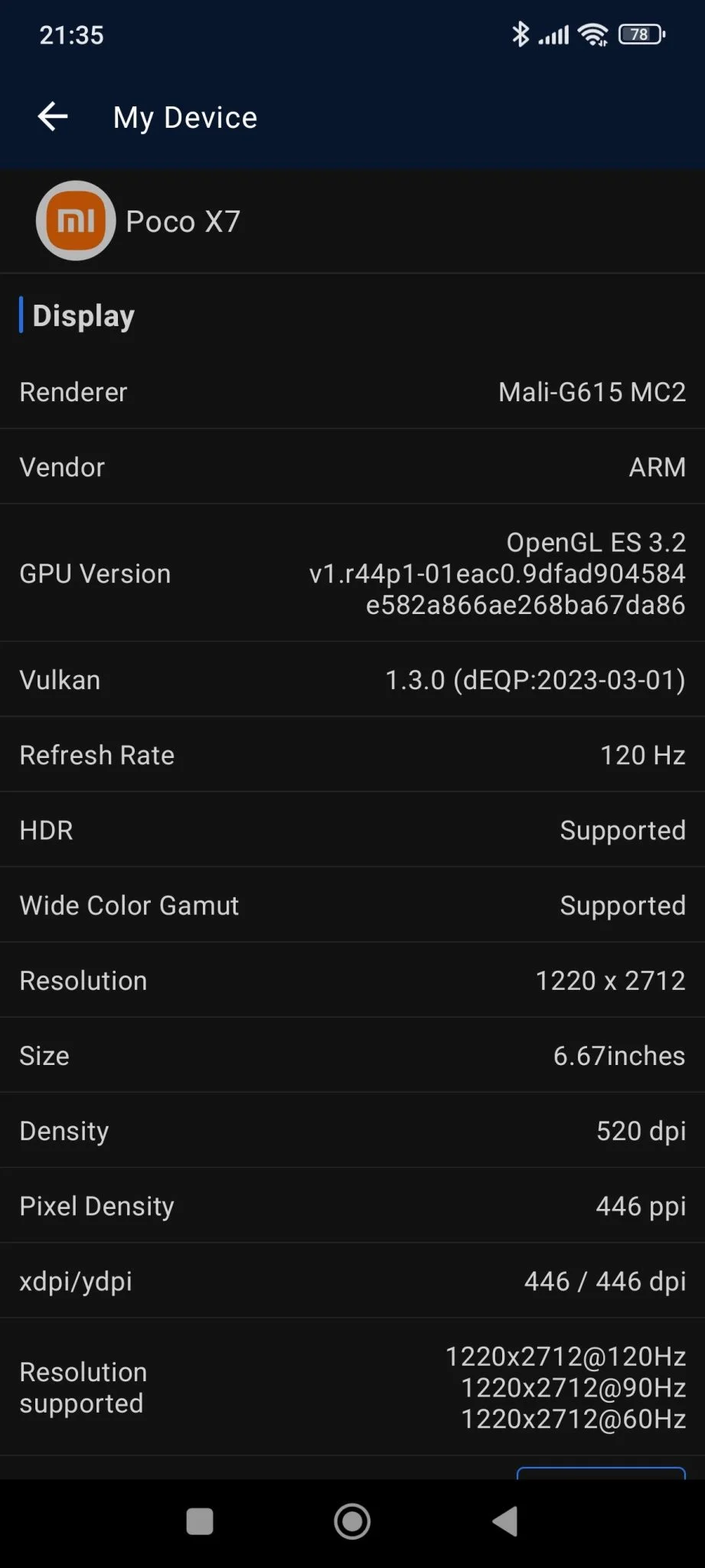 A Poco X7 kijelzőjét nagyon szerettem, jó ez a 6,67 colos, 120 Hz-en frissülő LTPS AMOLED, 1200×2712 pixel felbontásban.