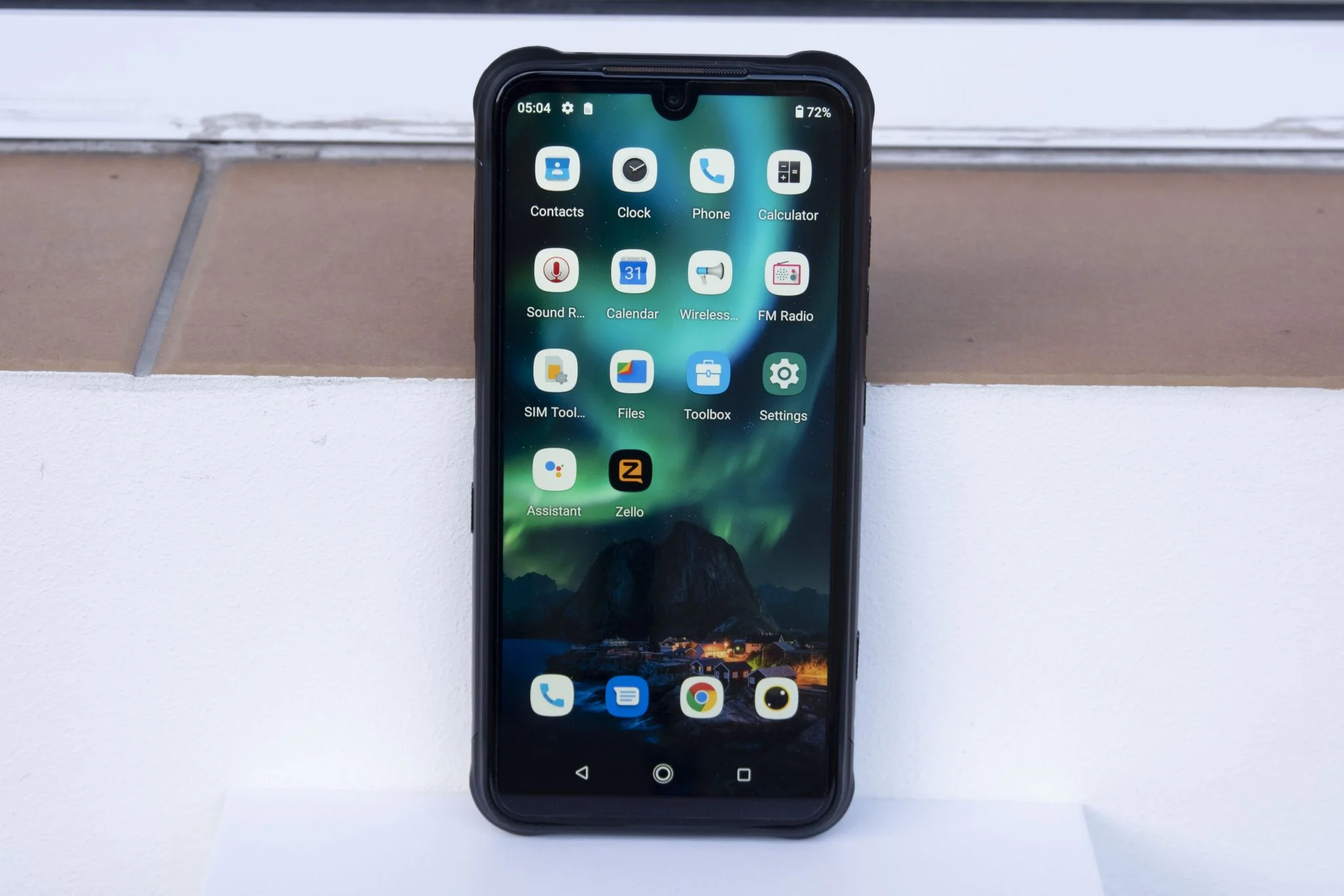 A mérnökök nem vicceltek, mikor az ellenállóképességről volt szó, 1,5 méterről leejthető, IP69K szabvány szerint áll ellen a behatásoknak, ami nemcsak folyadékok ellen jó – amit így oldanak meg a gyártók -, hanem nagynyomású vízsugár ellen is kiváló, de nem mellékesen porálló is a teló. Ha viszont vízbe merítitek, utána szárítsátok ki, mert ettől még pl. az USB kábel nem kedveli a folyadékokat, és a jack csatlakozójában sem érdemes vizet tárolni, szóval csak ésszel. Szemből nézve viszont semmi extra nem tűnik fel, akár egy átlagos régebbi, csepp notch-csal ellátott telefon is lehetne. A súlya viszont csekélynek éppen nem mondható, negyed kilóra sikeredett a 162,5*80*13 mm méretű teló.