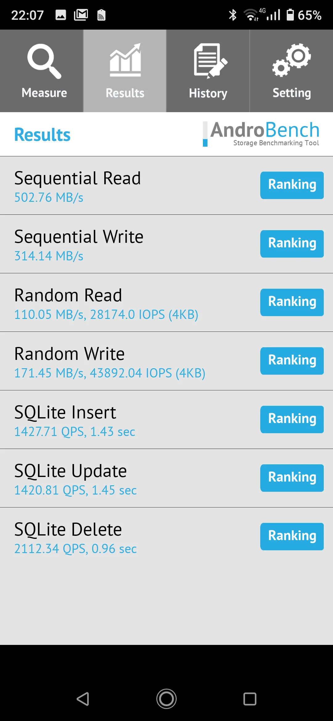 Nyilván abba a környezetbe – szabadban tevékenykedőknek vagy spéci munkát végzőknek -, ahová ezt a telefont szánják, ott nem a játékok futtatása az elsődleges szempont. Ez azért látszik a benchmarkokon is, Antutuban 171 000 pontot, míg GFX-Benchben 37 FPS-t hozott össze a hardver, ami azért már elég a gamek alacsony felbontáson való futtatásához. Ami meglepett, hogy a háttértár a UFS 2.1-es technológiát is támogatja, és az Androbench alapján elég gyors is, 503 MB/s olvasási és 313 MB/s írási sebességet mutatott a teszter. Ezek nagyjából a Redmi 9 és a Poco M3 számai, vagyis abszolút rendben van az ár/érték arány.
